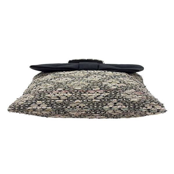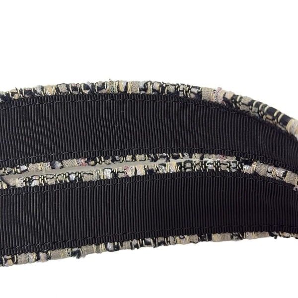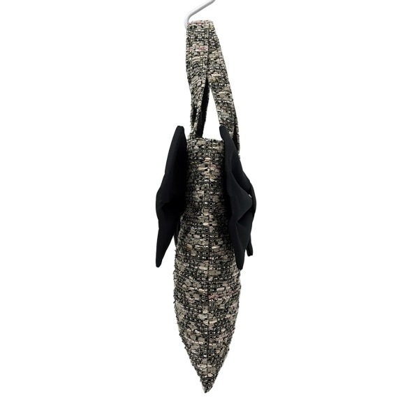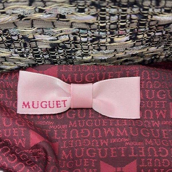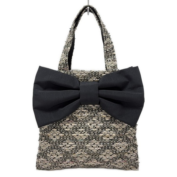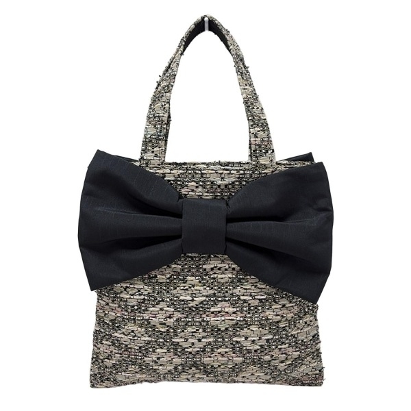 ミュゲ MUGUET トートバッグ - 黒×ベージュ×マルチ リボン/ラメ 美品 バッグ