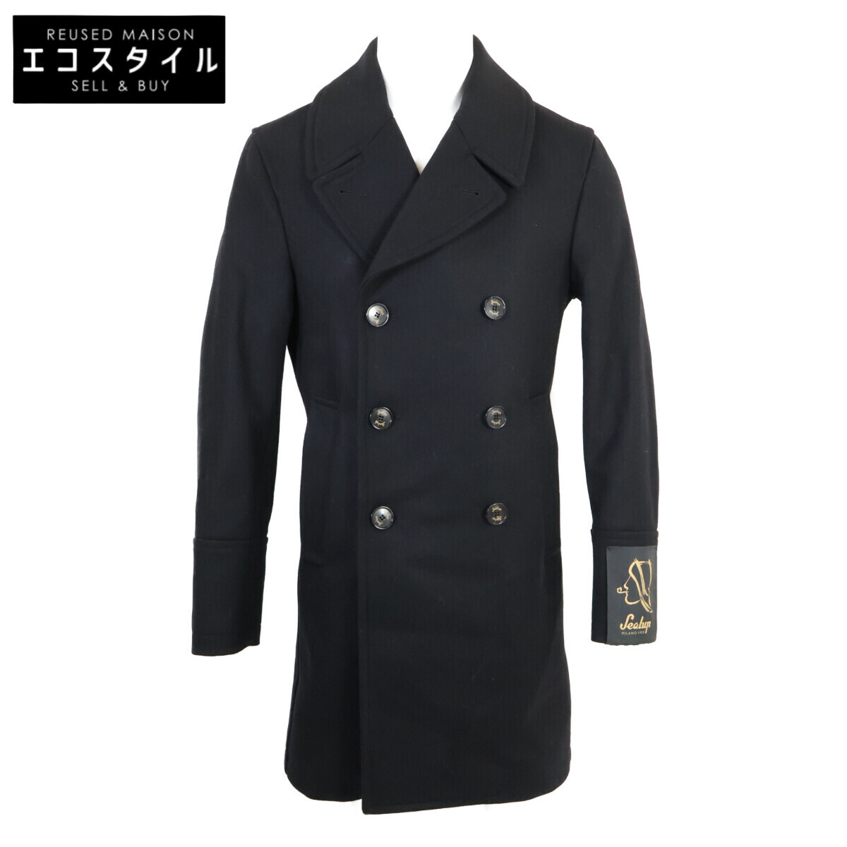 美品/国内正規 Sealup シーラップ GENOVA ジェノバ ウールメルトン ピー コート 46 ブラック メンズ