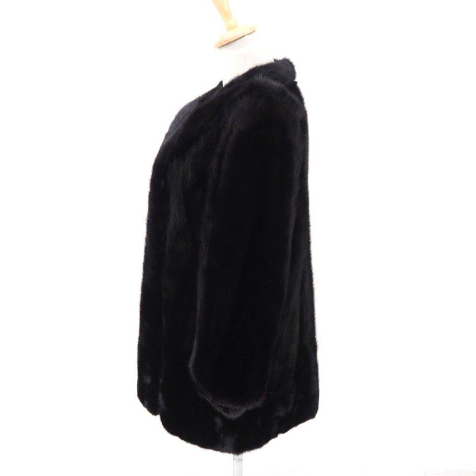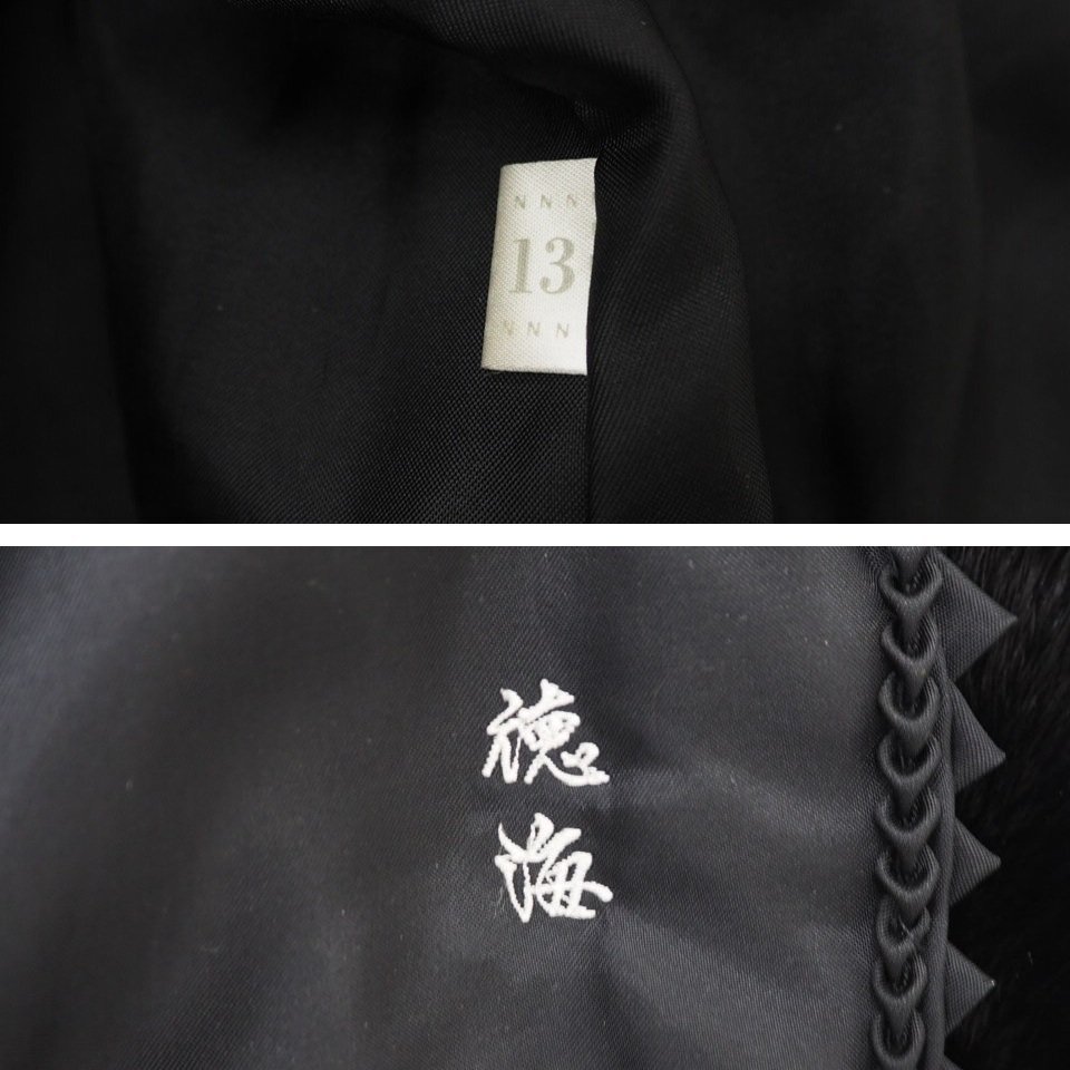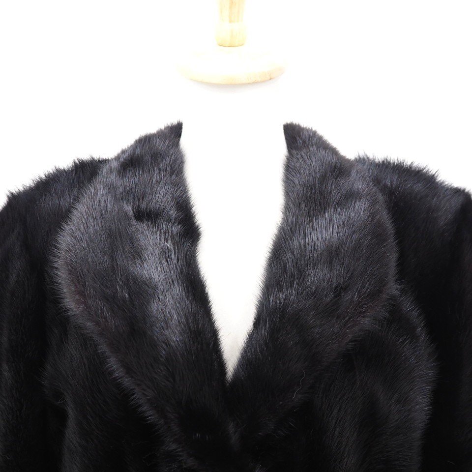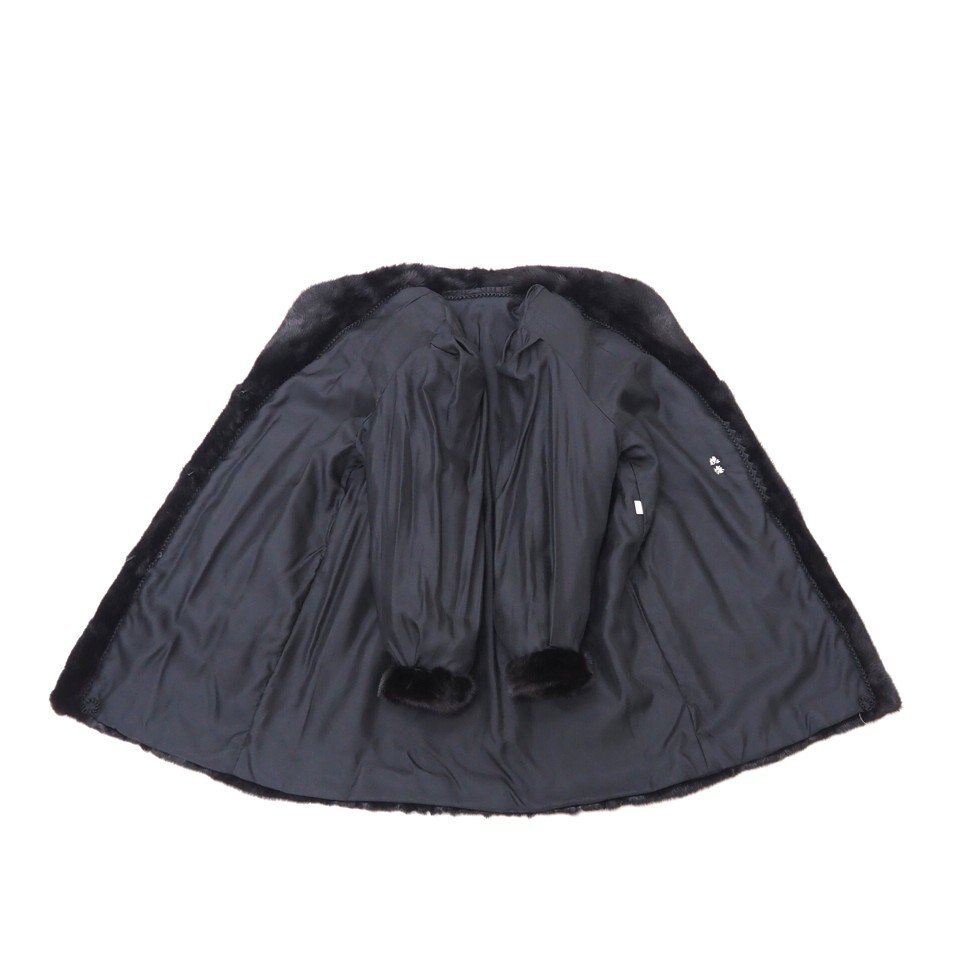 高級毛皮【 アップヘアー / なめし良好 / BIGサイズ 】◆美品 ◆ミンク ◆セミロングコート 79cm丈◆ブラック◆13号 大き目 肩幅広目◆C456