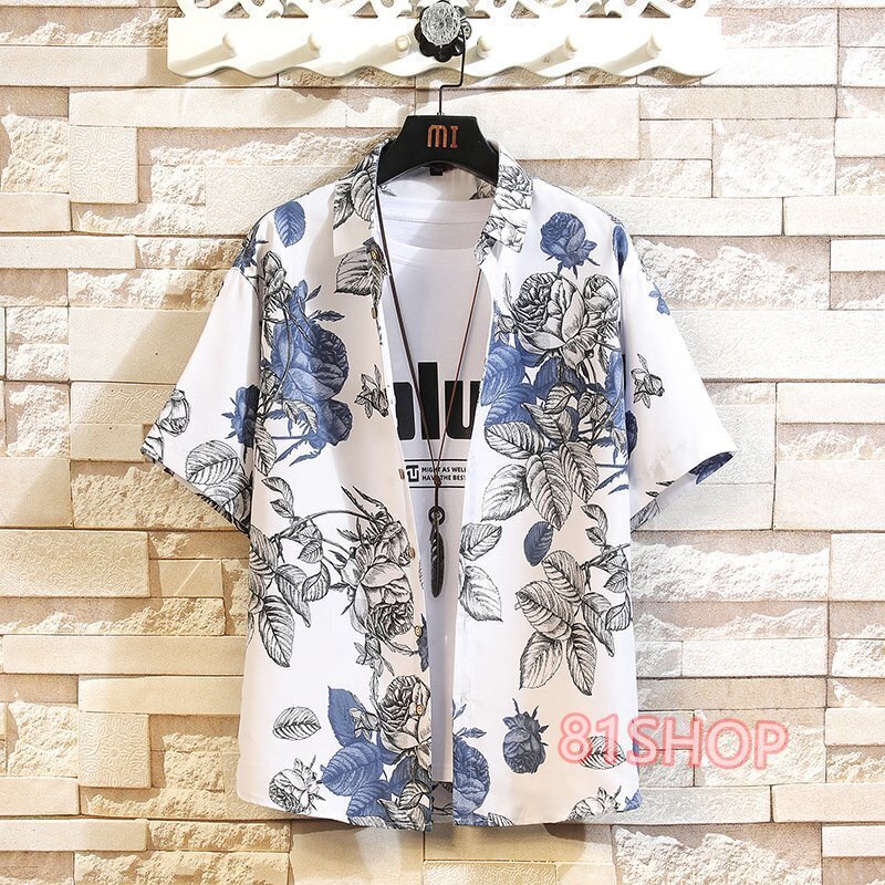 メンズ夏物 デジタルプリント 半袖シャツ ゆったりフィット カジュアル 翻領シャツ ポリエステル 薄手 半袖