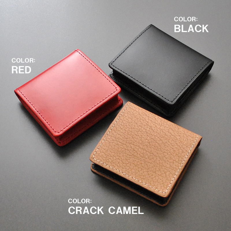 | 規格 | 【カラー】:クラックキャメル、ブラック、レッド、3色展開 【仕様】:コインスペース×1、背面ポケット×1 【素材】:外側/ボンデッドレザー、内側/合成皮革 【JANコード】:CC/ 4589969921619 BK/ 4589969921626 RD/ 4589969921633 |