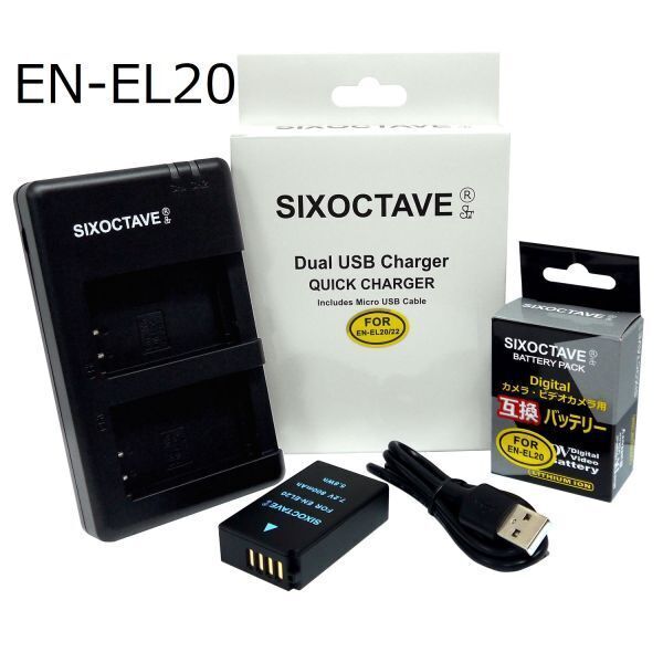 EN-EL20 Nikon ニコン 互換バッテリー 1個と 互換デュアルUSB充電器 の2点セット