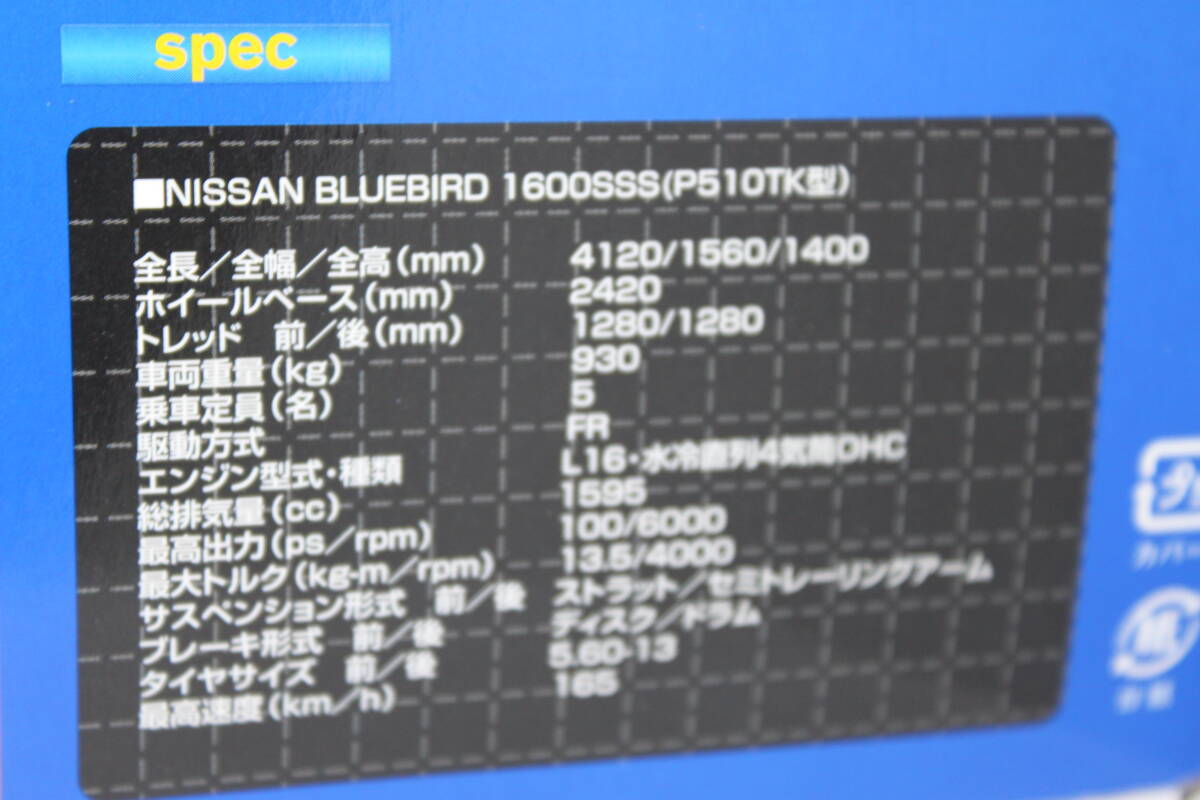 【入手困難・最終1台】1/64 ダイドー日産ブルーバード1600SSS青(未組立・美品)専用台紙・当選通知付属 徳大寺有恒が選ぶ俺のこだわり