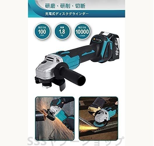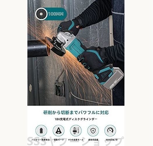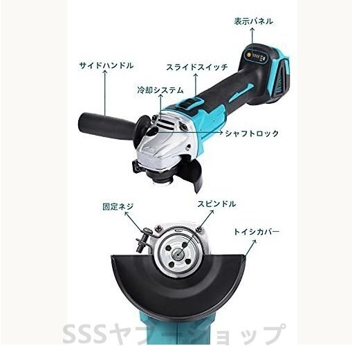 グラインダー 18V 充電式 ディスクグラインダー コードレス 100mm 電動ラインダー 3段階変速型 スライドスイッチ (本体のみ)