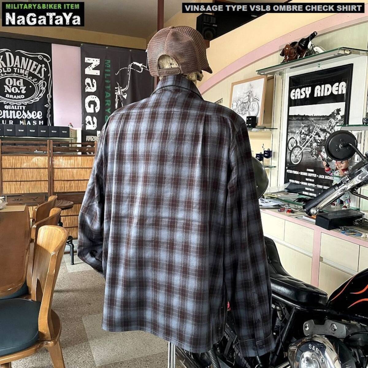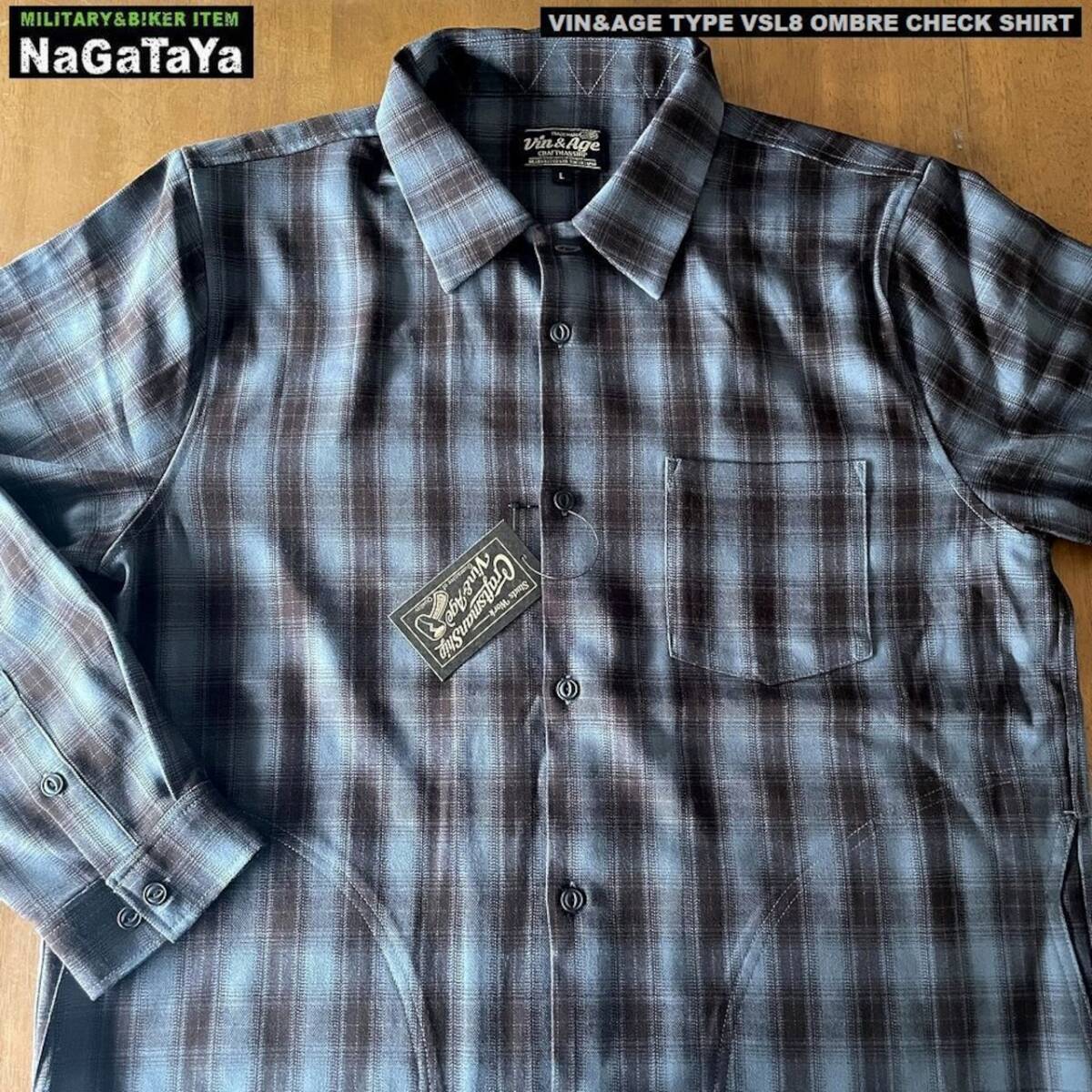 Vin&Age ヴィンアンドエイジ TYPE VSL8 セミワイド オンブレ チェックシャツ ブルー XLサイズ サイドポケット付