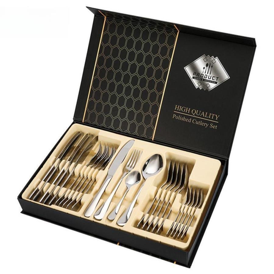 カトラリーセット 24本セット ステンレス製 スプーン フォーク ナイフ ディナースプーン 西洋食器セット 北欧 高級 クチポール風 オシャレ