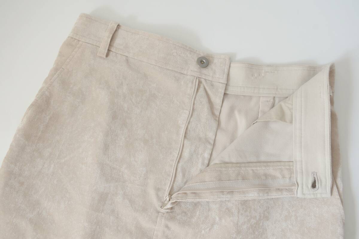 上品な光沢となめらかさのあるヴィンテージのようなクラッシュ別珍を使用した、品が良くデイリーユースにぴったりな一着です。
