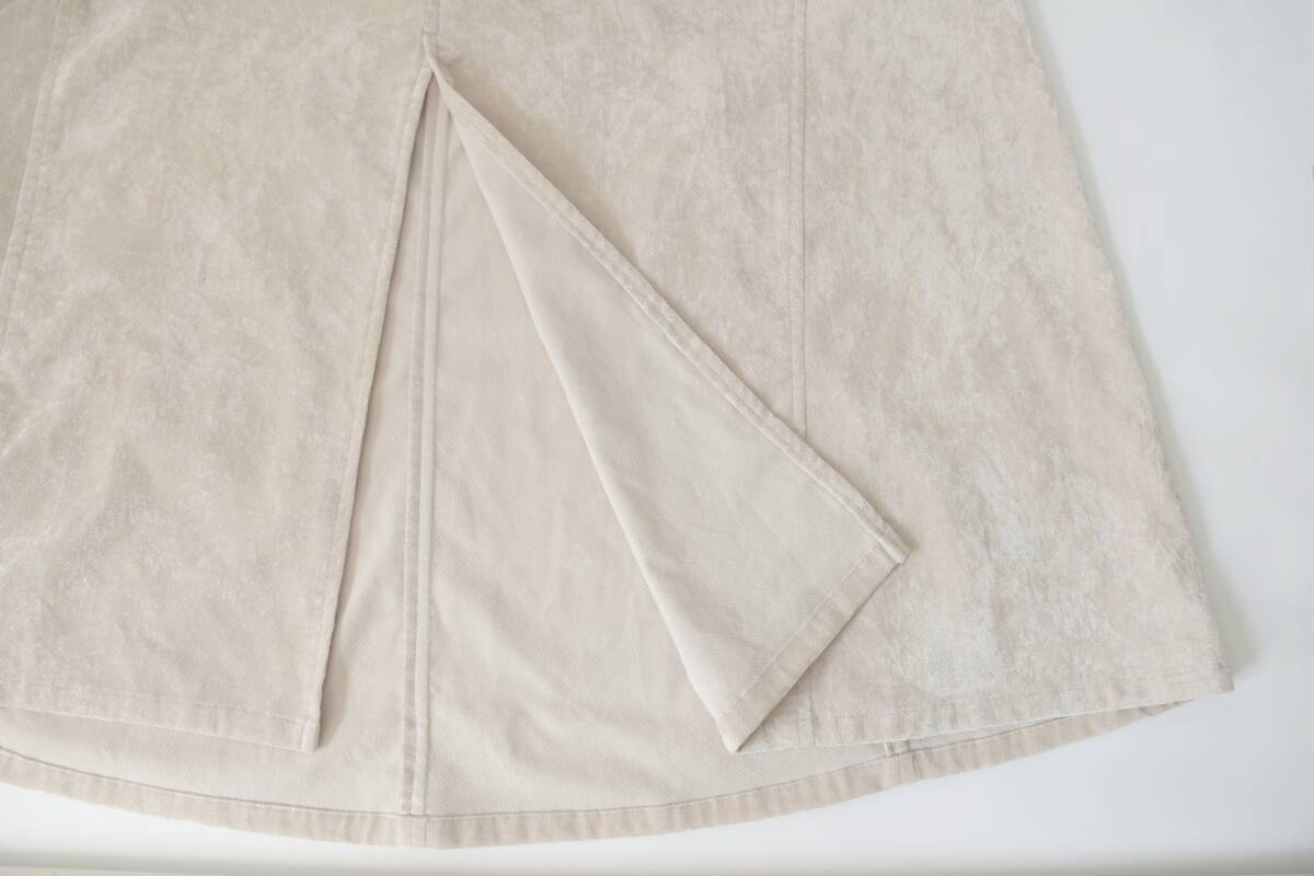 フロント裾にスリット入りで、動きやすくも広がりすぎないとてもきれいなシルエットに仕上がっています。