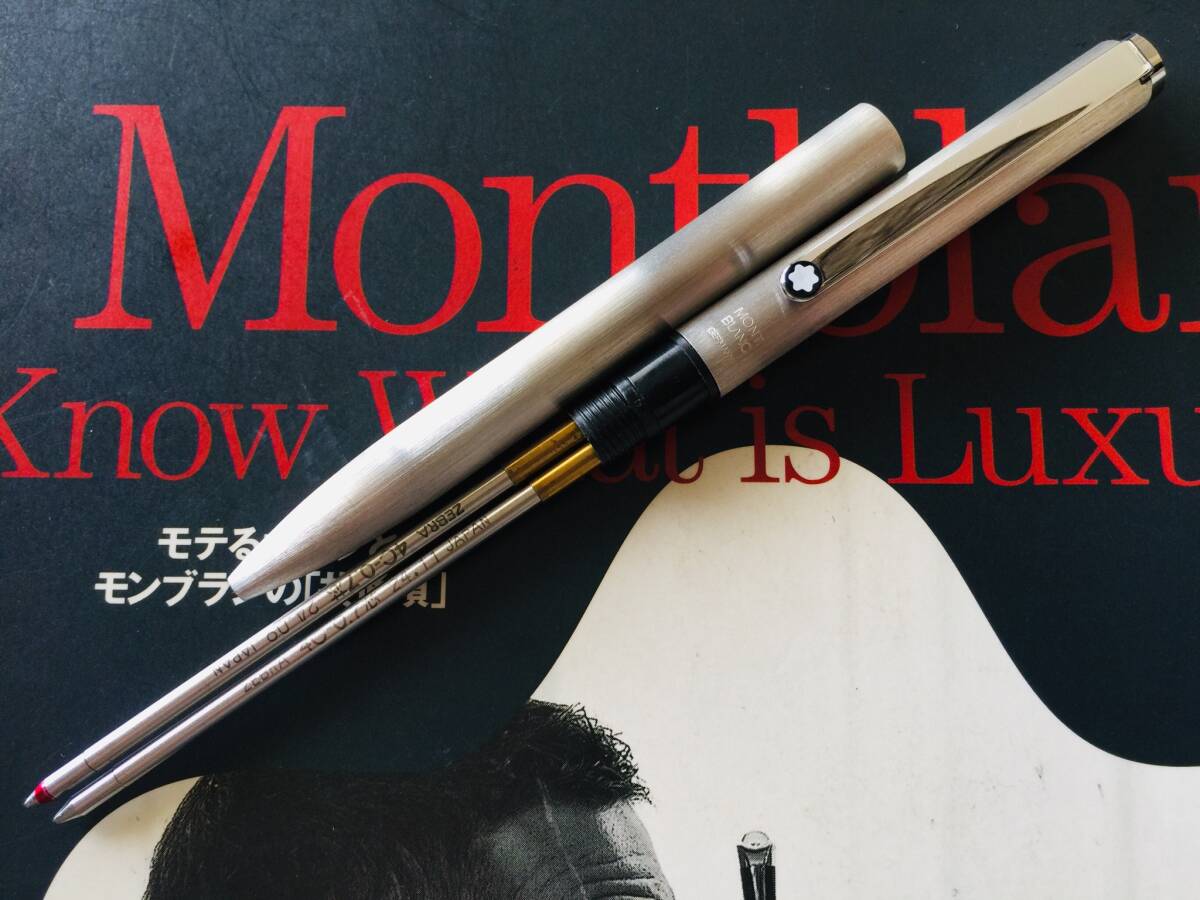 廃番となってしまったモンブランSライン2色ボールペンです。1980年代流行した貴重なモデルで、ツイスト式、シンプルな細身のシルエットがクールで実用的なペンです。ボディーはステンレスのヘアライン。