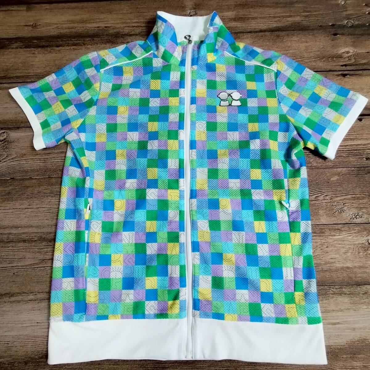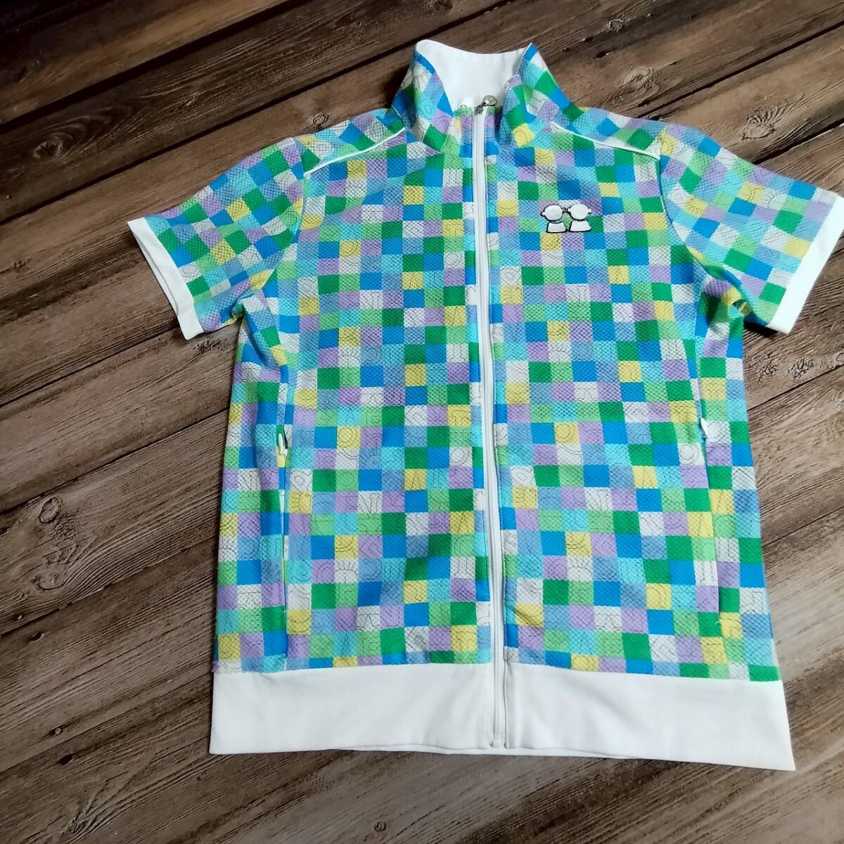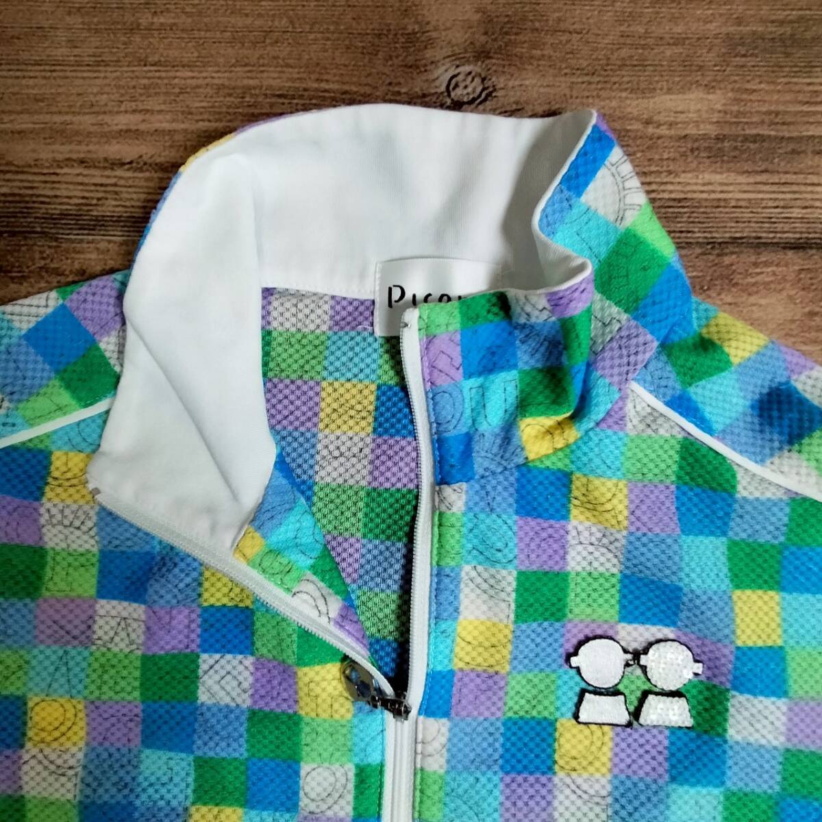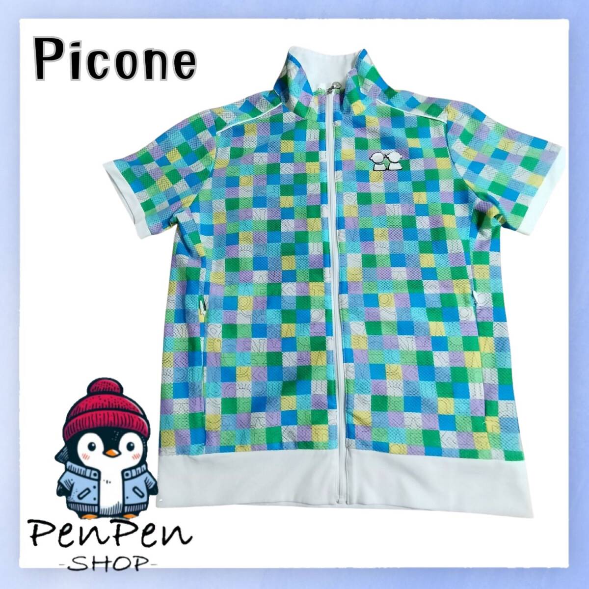 Picone CLUB ピッコーネクラブ レディース 半袖 ゴルフウェア ジップアップ シャツ チェック柄 ブルー系 size I Mサイズ 吸汗速乾