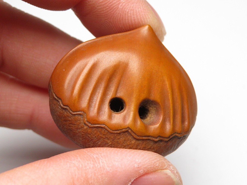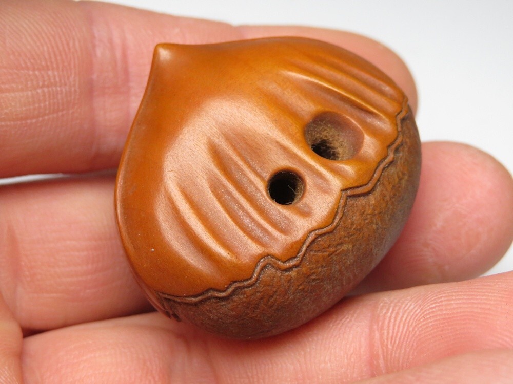 ●明治期 堤物 木製 栗 根付になります。古い物ですが極力状態の良い作品を出品しておりますので是非ご覧ください。 【状態】 ●経年を考慮し状態はよいと思います。 【サイズ(約)】 ●3.3×3.8㎝ (素人寸法ですので、若干の誤差はお許し下さい) 【発送】 出張等により発送に一週間ほどお時間を頂戴する場合がございます。 【領収書】 領収書発行は致しておりません。 Yahoo!かんたん決済手続き完了時の確認画面をプリントアウトして領収書としてお使い下さい。 ※領収証として税務署に認められております。 ご了承のうえでのご参加をお願いいたします。以下の注意事項もご確認ください。 |