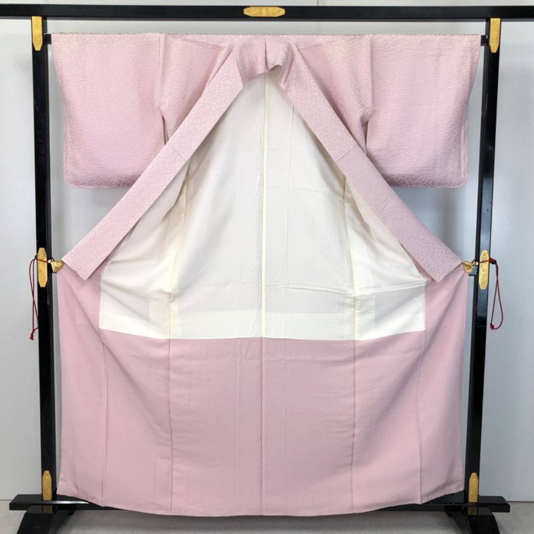 色無地 桜色 松柄地模様 丹後縮緬 しつけ糸 K-5239 着物 きもの kimono 和服 和装 中古 リサイクル着物 【送料無料】