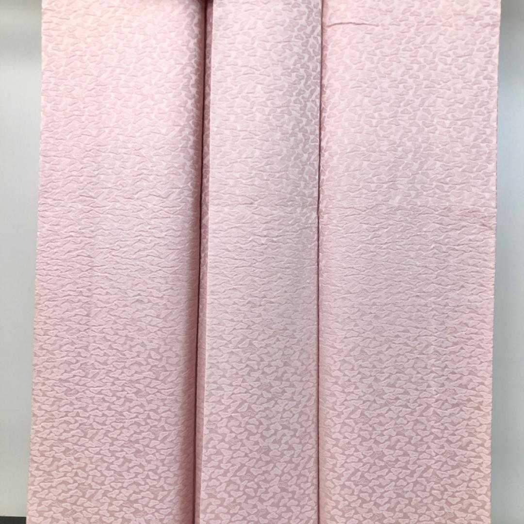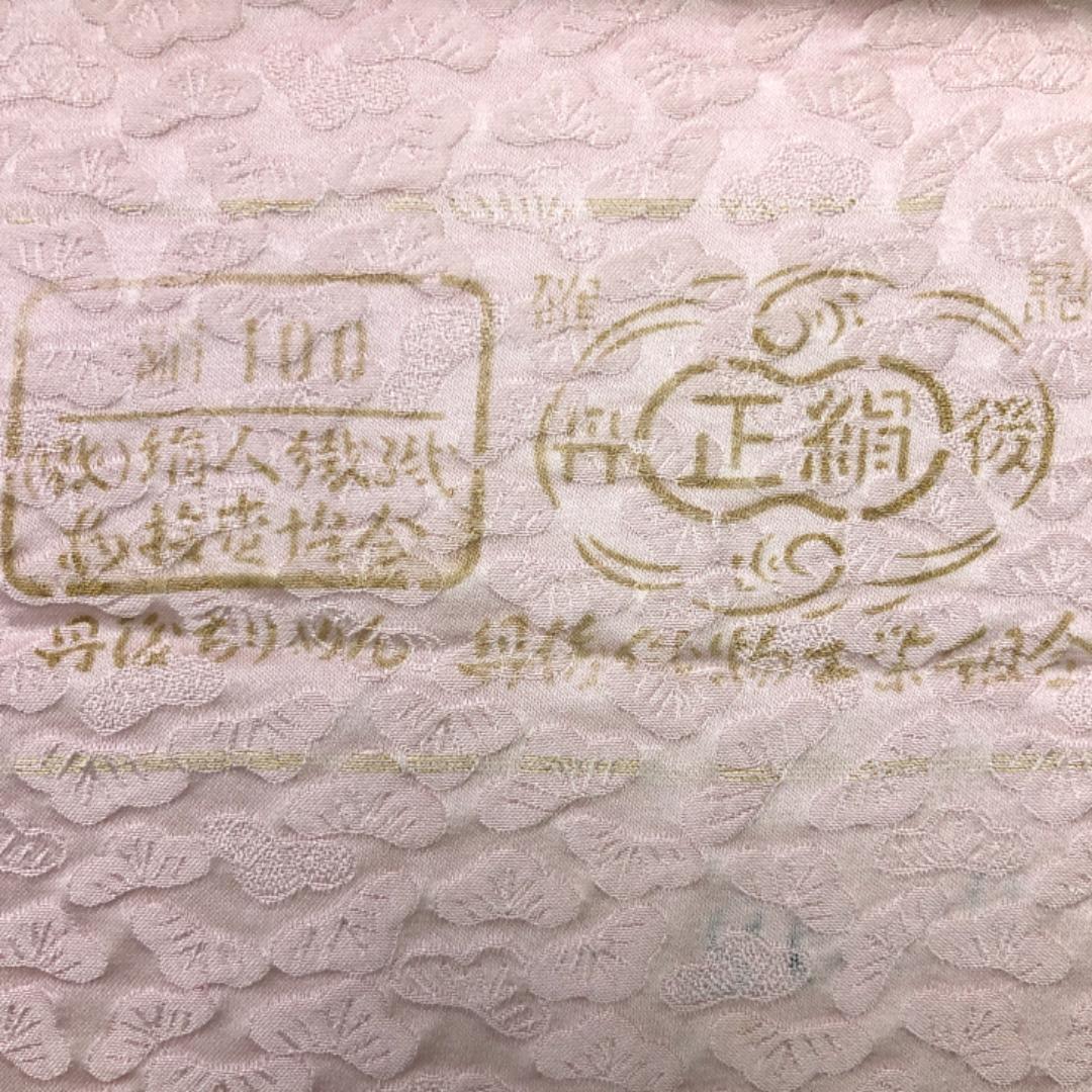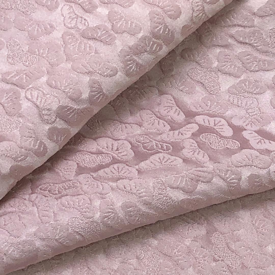 桜色の優しいお色味の丹後縮緬に松柄地模様がデザインされた素敵なお品でございます。
