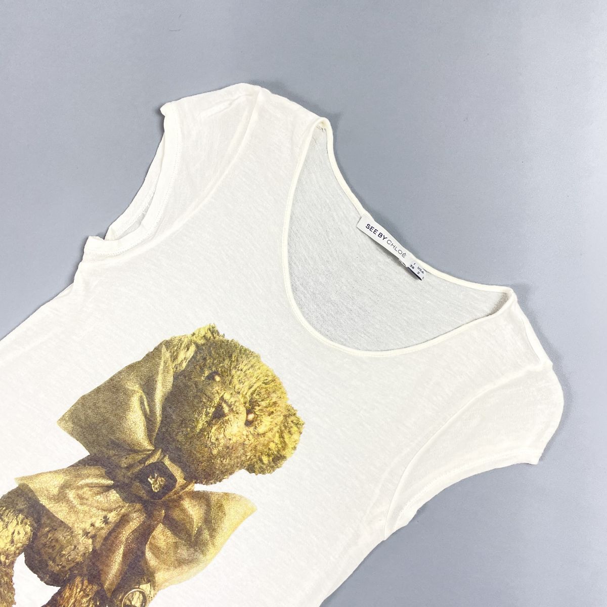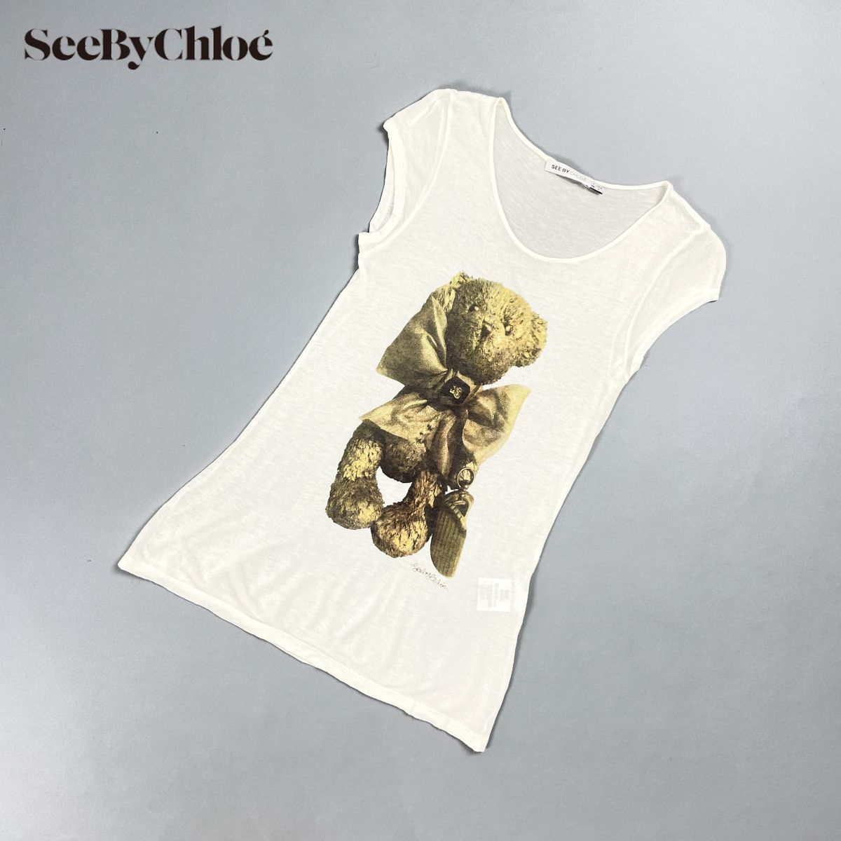 See By Chlo シーバイクロエ Uネック半袖ベアープリントTシャツ くま 薄手 フレンチスリーブ レディース 白 ホワイト サイズ38*FD206