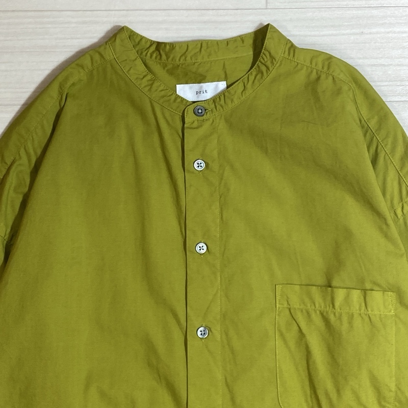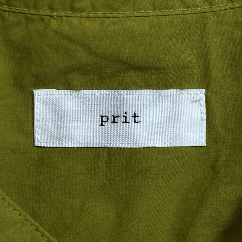 prit/プリット/製品染め/バンドカラーロングシャツ/ブラウス/サイドスリット/裾前後差デザイン/ラウンドヘム/ゆったりシルエット