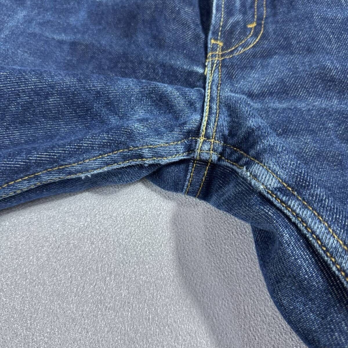 深めのインディゴブルーに程よい色落ちが入り、無骨さと清潔感を兼ね備えた一本に仕上がっています。