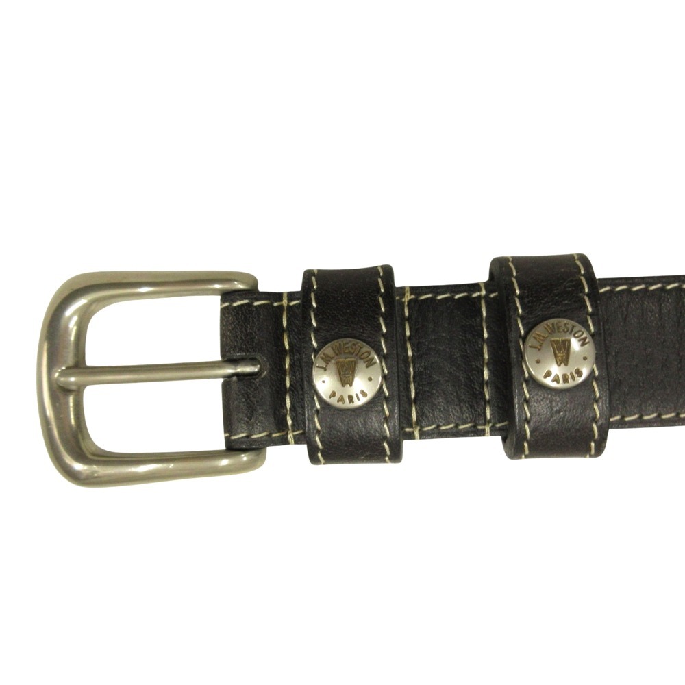 良品 J.M. WESTON ジェイエムウエストン レザー ベルト バックル ステッチ #85 黒 ブラック シルバー