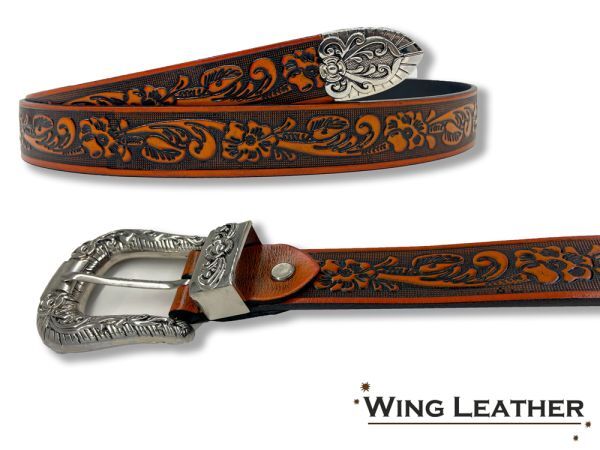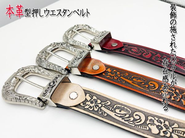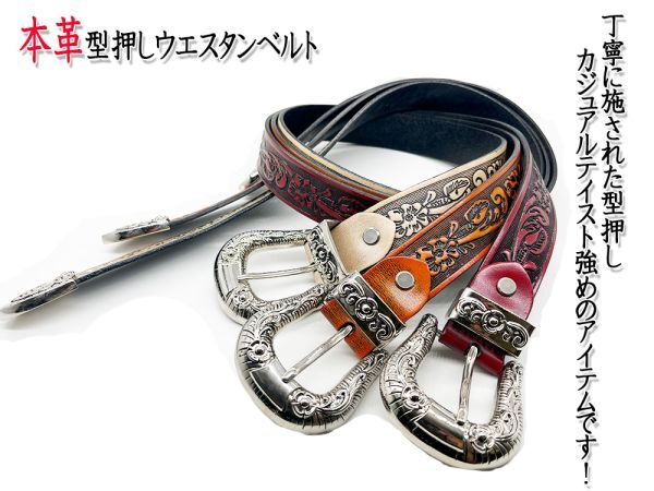 新品 ウエスタン レザー ベルト メンズ 本革 牛革 型押し カウボーイ ベルト プンターレ アメリカン カジュアル cnk040-CAMEL