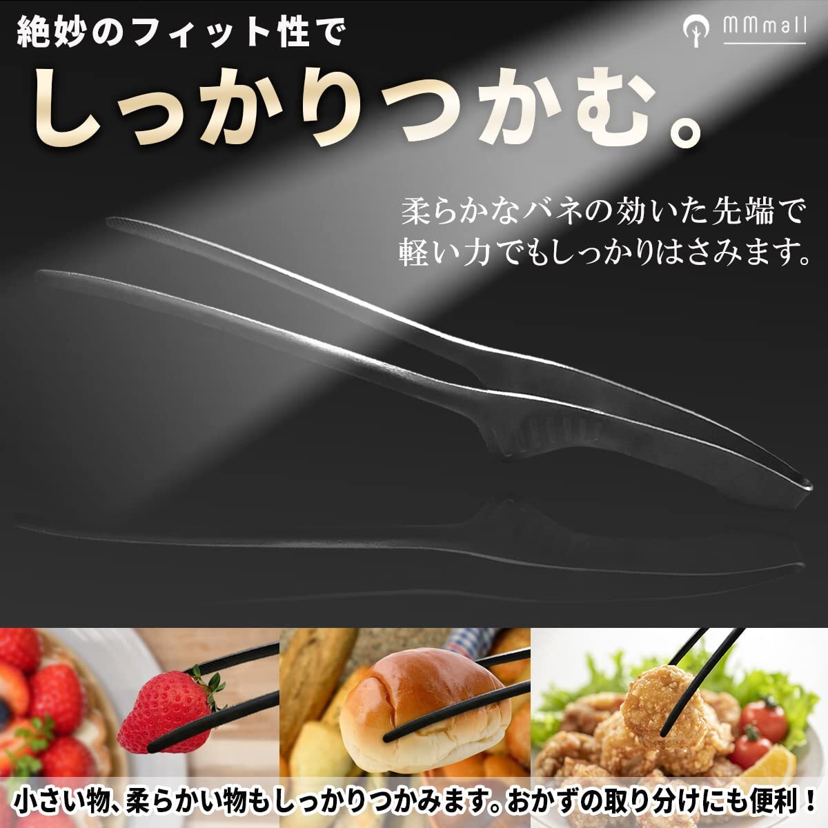 トング 焼肉 菜箸トング 焼肉用トング バーベキュー トング ステンレス (2本セット, ブラック)