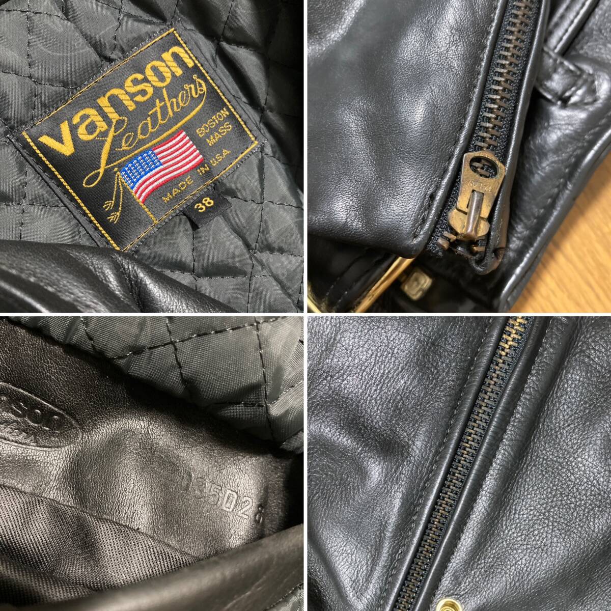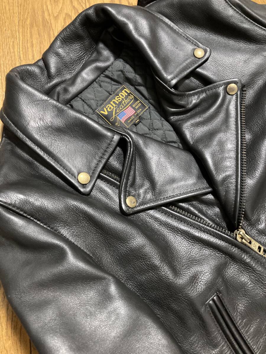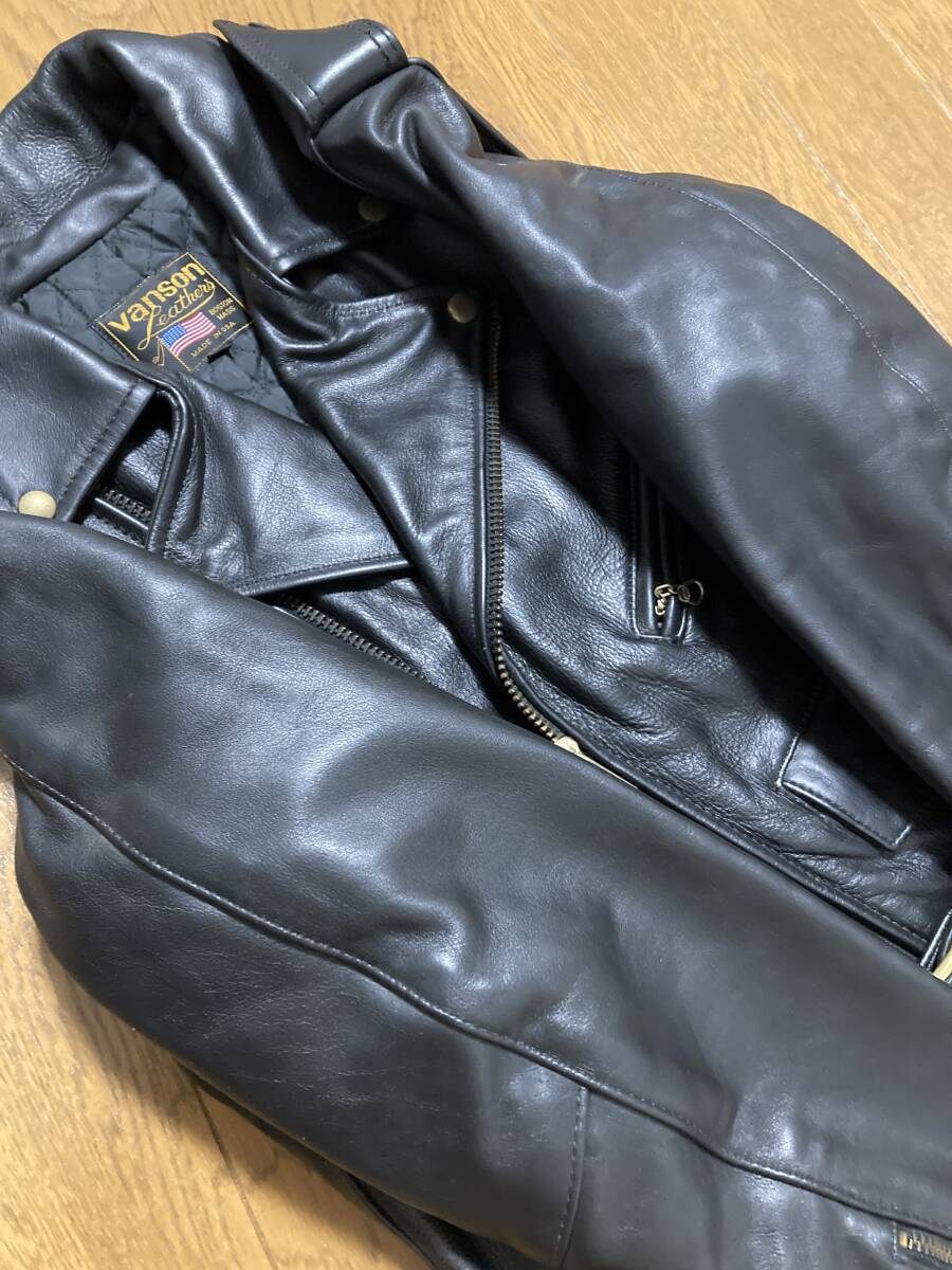 [VANSON] C2 ダブルライダース バイカーレザージャケット 38 本革 裏地キルティング USA製 ブラック バンソン