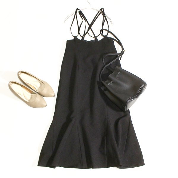 バックギャザーの綺麗めスーツ生地ワンピースです。