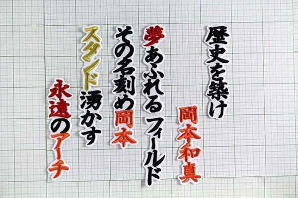 送料無料 岡本 応援歌 刺繍 ワッペン 〈行黒/白〉 巨人 読売 ジャイアンツ 応援 ユニフォームに