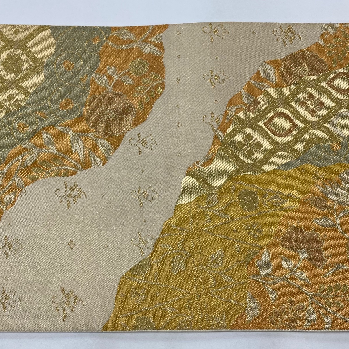 | 袋帯 秀品 川島織物 落款 草花 網目文 箔 金色 六通 正絹 【中古】 |
