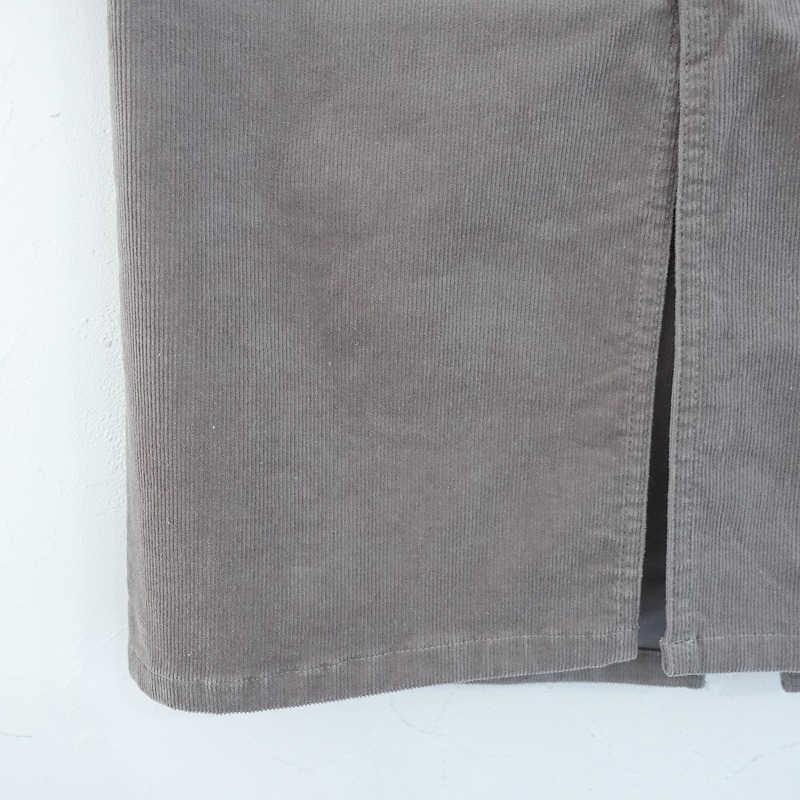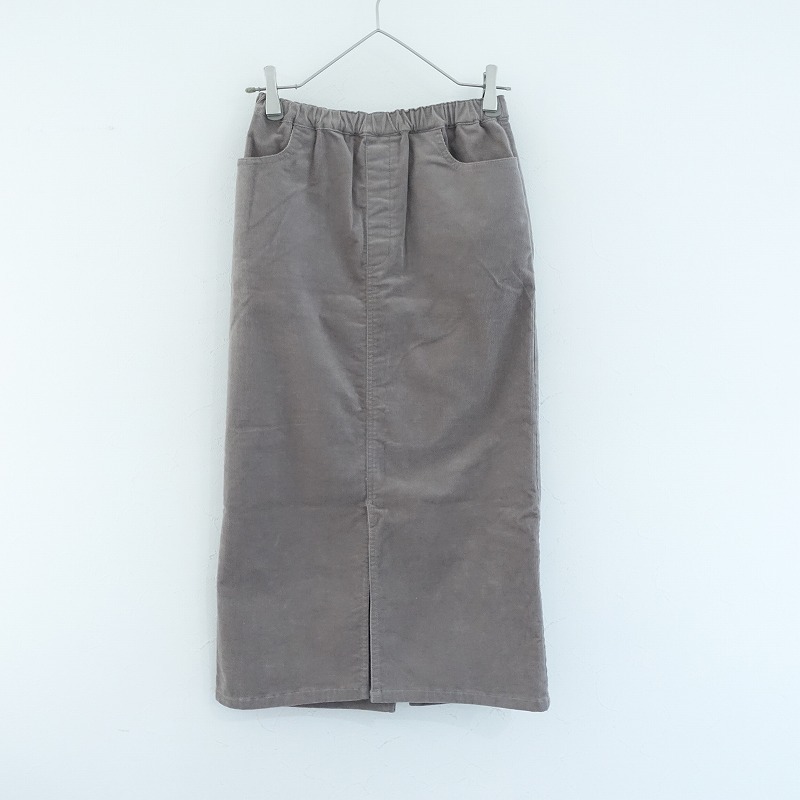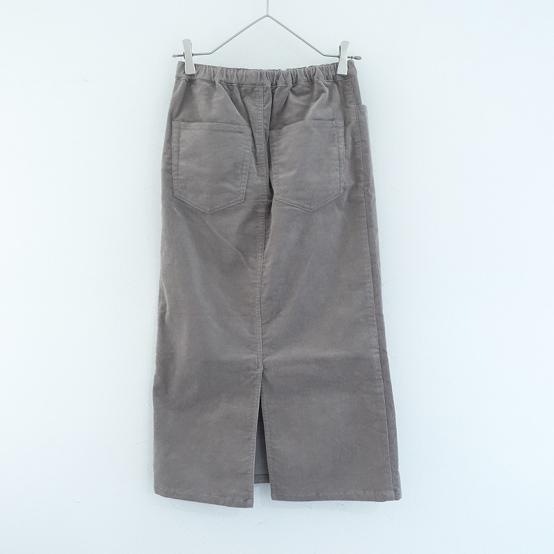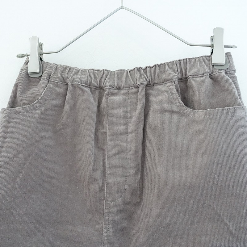 | Shipsの手洗い可能 ストレッチコーデュロイイージーナロースカートです。カラーはグレーで、細畝ストレッチコーデュロイ素材です。ウエスト総ゴム&紐入りで、フロント開口部はミシンステッチのみのフェイク仕様で、前後裾にセンタースリット入りです。前腰左右&ヒップ左右にポケットがあり、裏地は付いておりません。 |