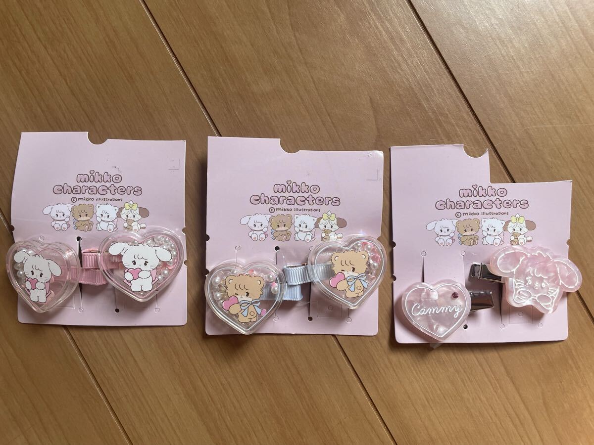 mikko charactersの、ビーズのシャカシャカとハートがキュートなデザインと、キラキラストーンがかわいいヘアピン、6点セットです☆