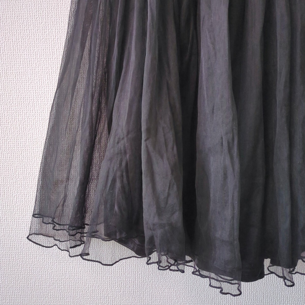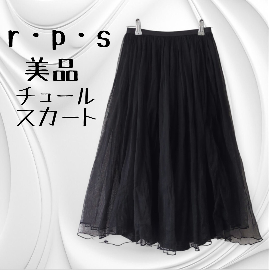 美品 r・p・s アールピーエス チュールスカート ロングギャザースカート 黒 春