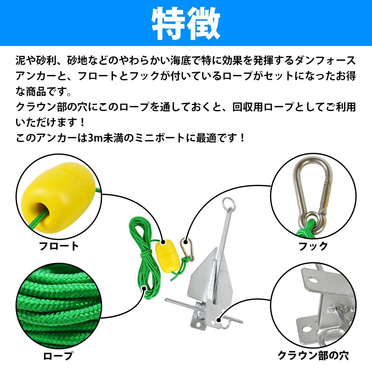 『ロープ アンカー セット』ダウンフォースアンカー 1.5kg フロート/ロープ/フック付!ジェットスキー 船 カヌー 錨