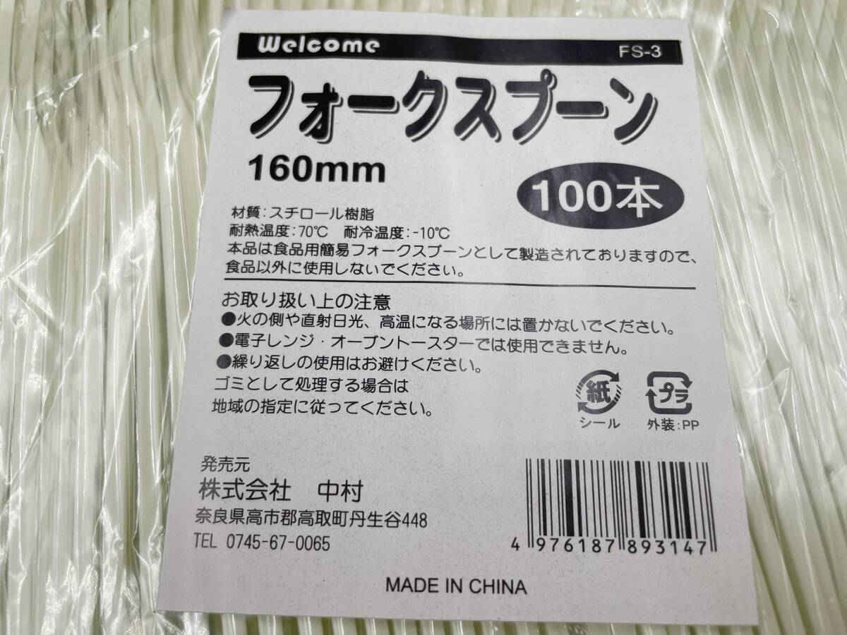 新品未使用品 プラスチックフォークスプーン 16cm 一袋100本入り 3袋セット販売 その | |
