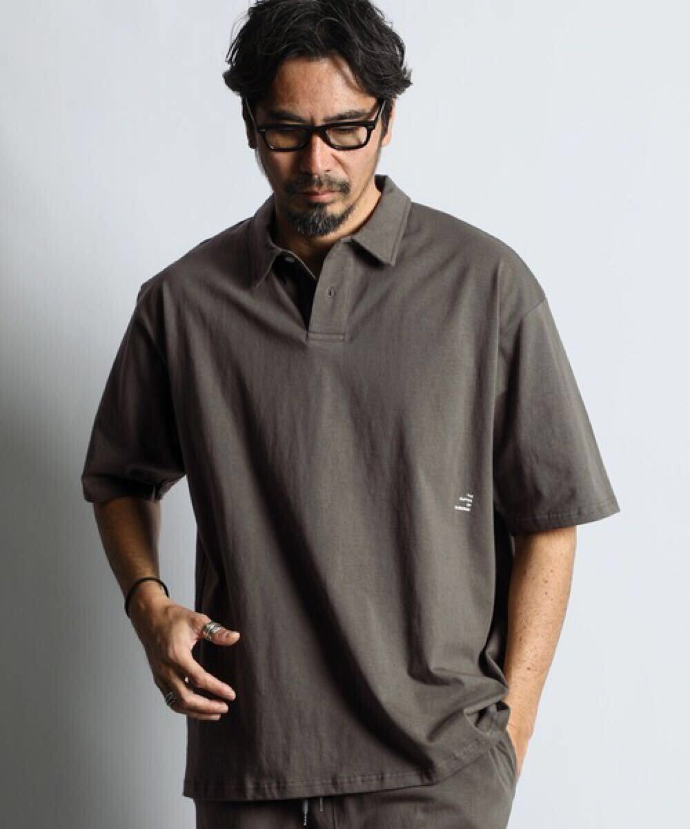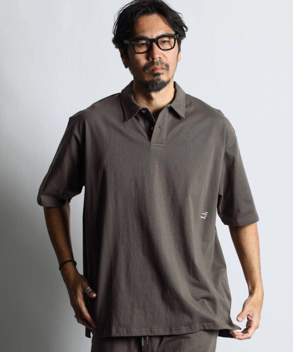 肩の落ち感やゆとりのある身幅など、オーバーサイズで仕上げたイージー&ラフなポロ。ポロシャツ定番素材の鹿の子ではなく、ヘビーなTシャツ素材を使用しているのでゴルフウェアのような"いかにも"感のないタウン&デイリーユースできるデザインとなっています。