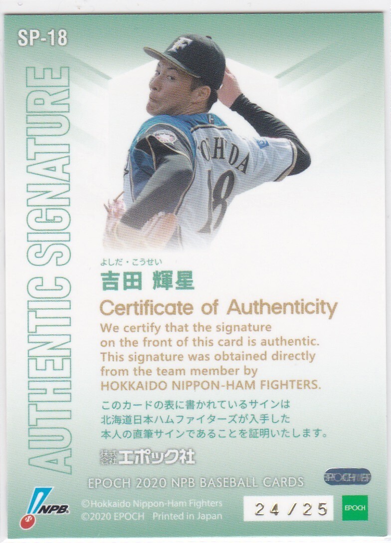 25枚限定 吉田輝星 (日本ハム) 2020 EPOCH エポック NPB 直筆サイン (#/25)