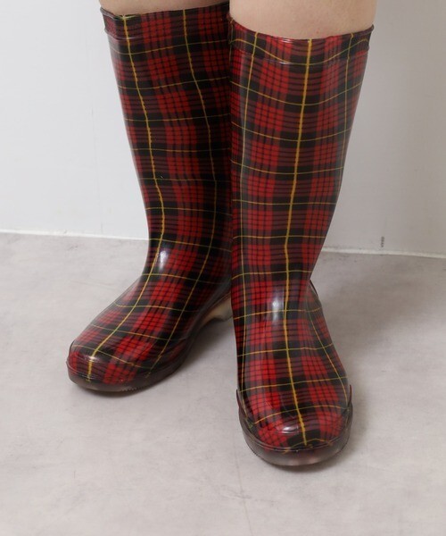 アウトレット レディース レインブーツ Sサイズ 22.0-22.5cm RED/CHK (レッドチェック) ロングブーツ 長靴 雨靴 af_15032 ②