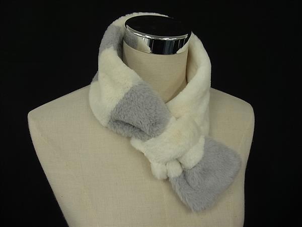 ■新品■未使用■ FURART ファーアート ポリエステル100% ティペット ストール マフラー 防寒具 アイボリー系×グレー系 DG0605