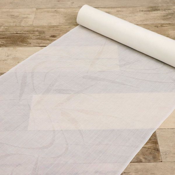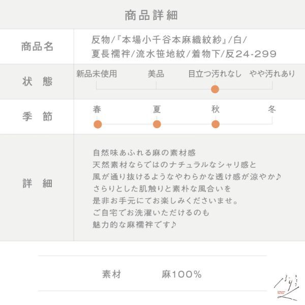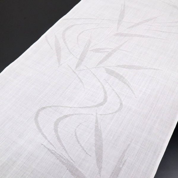 【反物 長襦袢】 『本場小千谷本麻織紋紗』 夏長襦袢 白 流水笹地紋 着物下 お仕立て可 反24-299