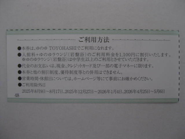****      ゆのゆ TOYOHASHI ご利用料金 割引券 1枚で2名OK 名鉄 株主優待 割引券 名鉄インプレス  を出品します。