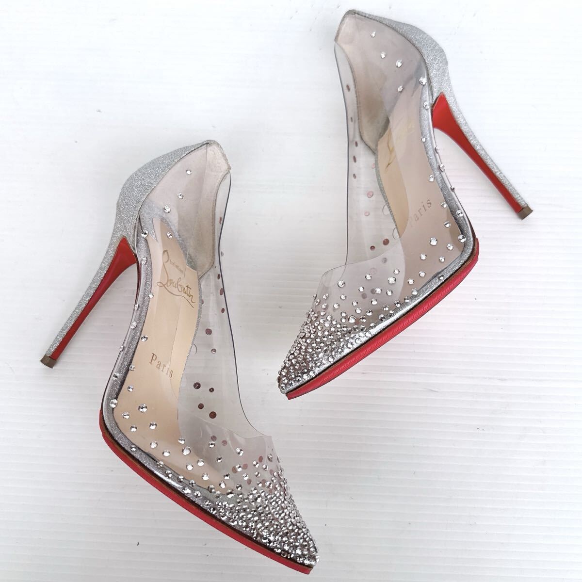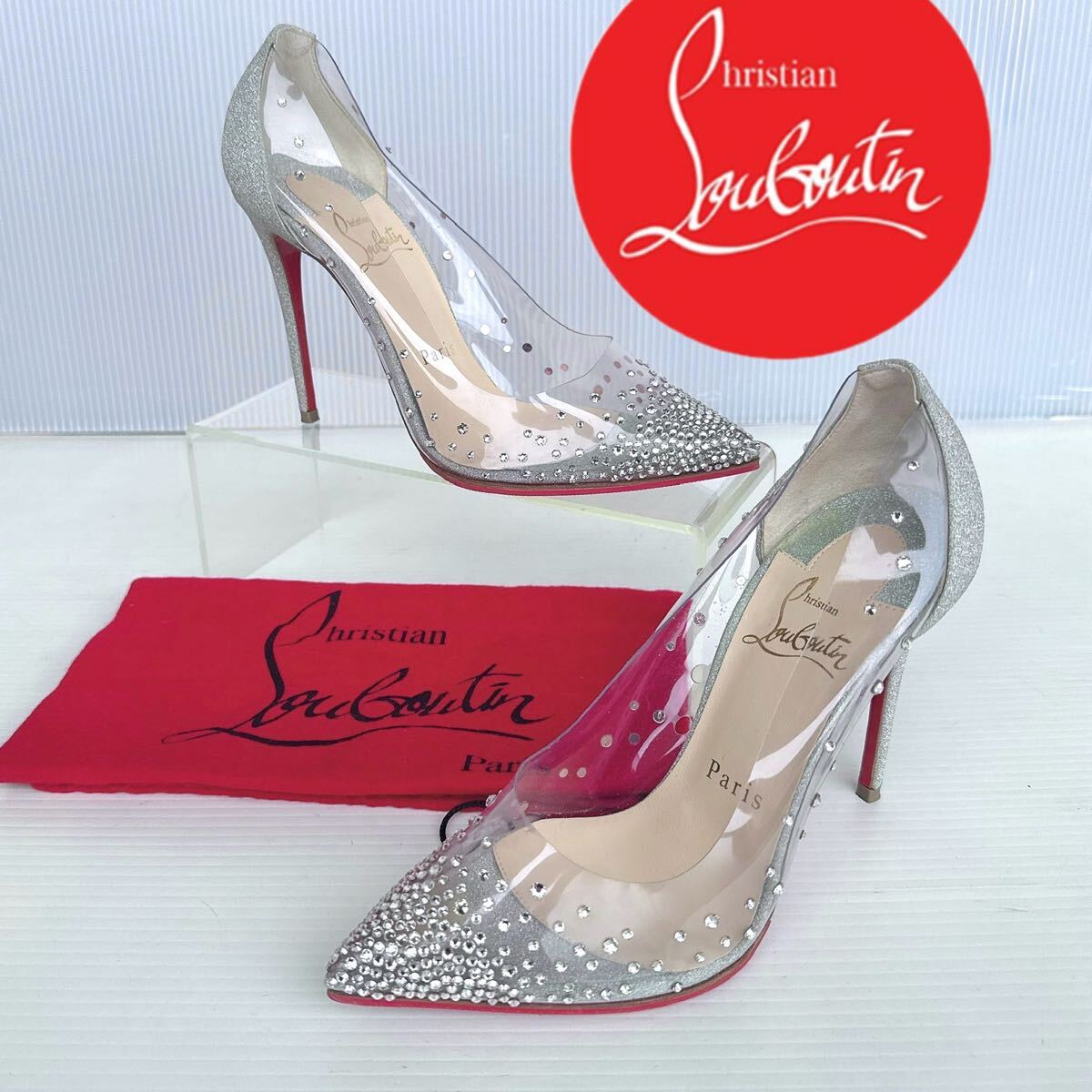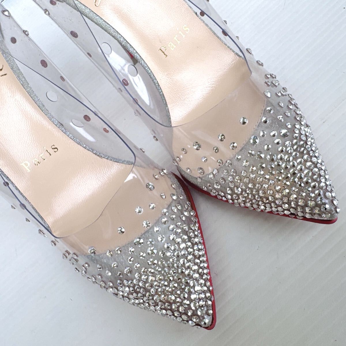 クリスチャン・ルブタン ポインテッドトゥ パンプス サンダル ピンヒール ハイヒール ビジュー クリスタル スワロフスキー ラインストーン 靴 イタリア製 正規品 箱付き