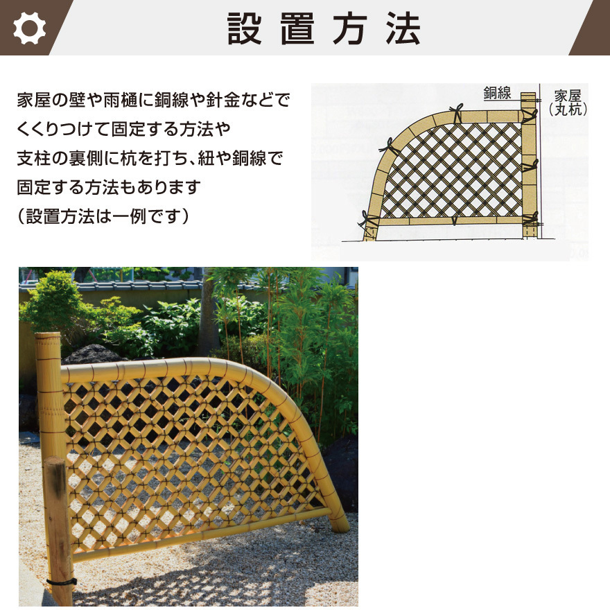 | 商品詳細 | この度は数ある商品の中から当商品を閲覧頂きまして有難う御座います。 販売価格 83,820円(送料・税込み) 仕切垣のなかでも最もポピュラーなデザインの光悦寺垣。 モダンな黒竹仕様は、和洋どちらのお住まいにも良く合います。 現代的な材料を使用し、丁寧に仕上げました。伝統的な華麗さは天然と全く変わりません。 耐久性に優れ、汚れにくくお手入れも簡単。玄関先の目隠しにもお勧めです。 本当の和風庭園にこだわる方へ。和の風合いを身近に感じれる一品です。 神社やお寺、宿泊施設、地域の行事など様々な方からご注文を頂いている品です。 【商品詳細】 商品名:人工竹仕切垣『人工竹光悦寺垣(黒竹)』 サイズ:W(幅)1500mm×H(高さ)1100mm 材質:人工プラ竹 AS系樹脂 この他のサイズ(W900mmxH900mm、W1200mmxH1000mm、 W1800mmxH1180mm)もご注文可能です。 |