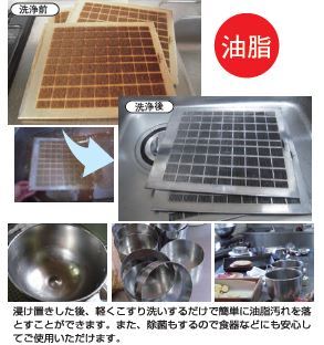 汚れを溶かすのではなく、酸素分解によって落とすので、器具・容器をいためません。