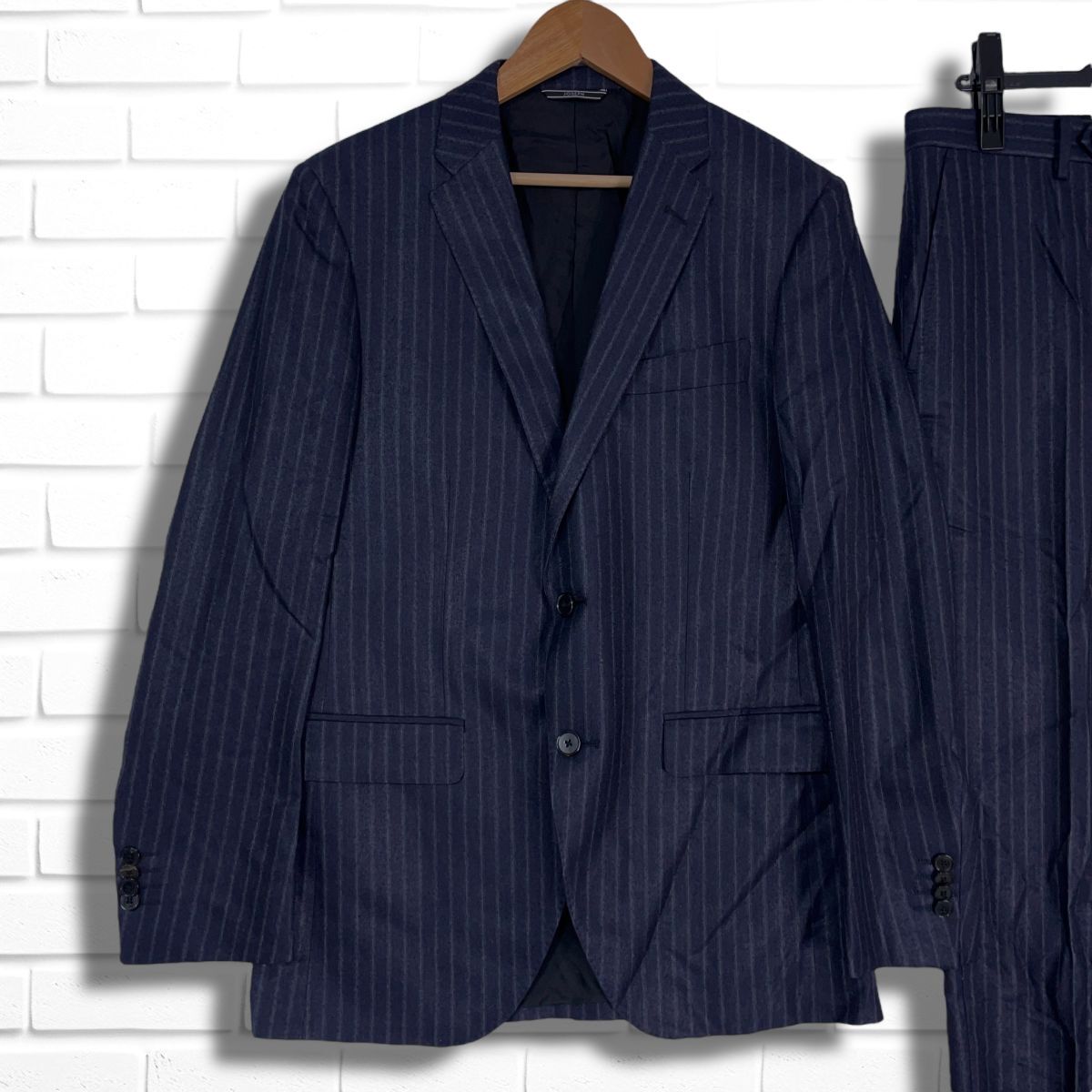 ◆美品◆ JOSEPH HOMME ジョセフ オム ウール 100% ストライプ セットアップ スーツ 紺 ネイビー メンズ 46 M ◆送料無料◆ 4735H◇