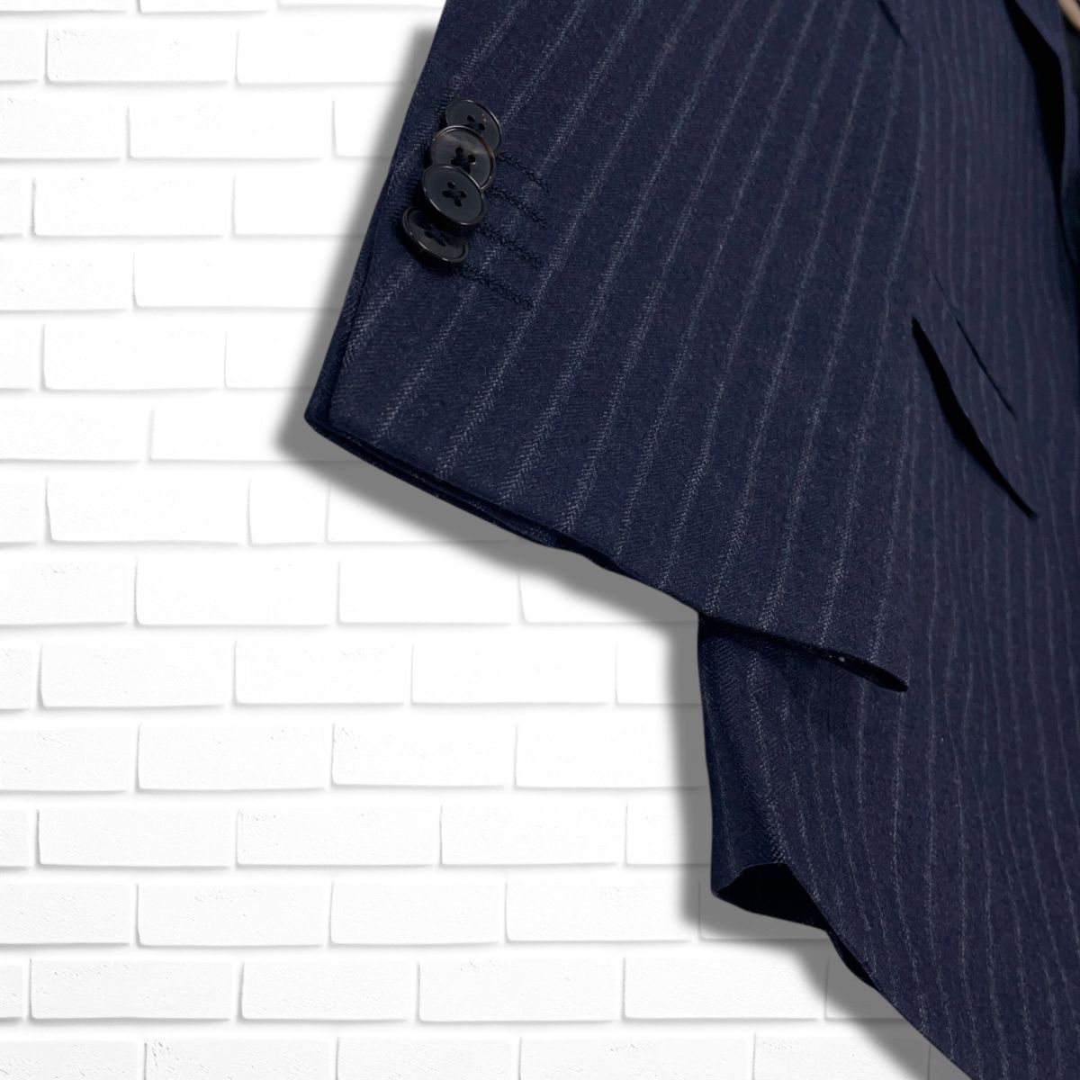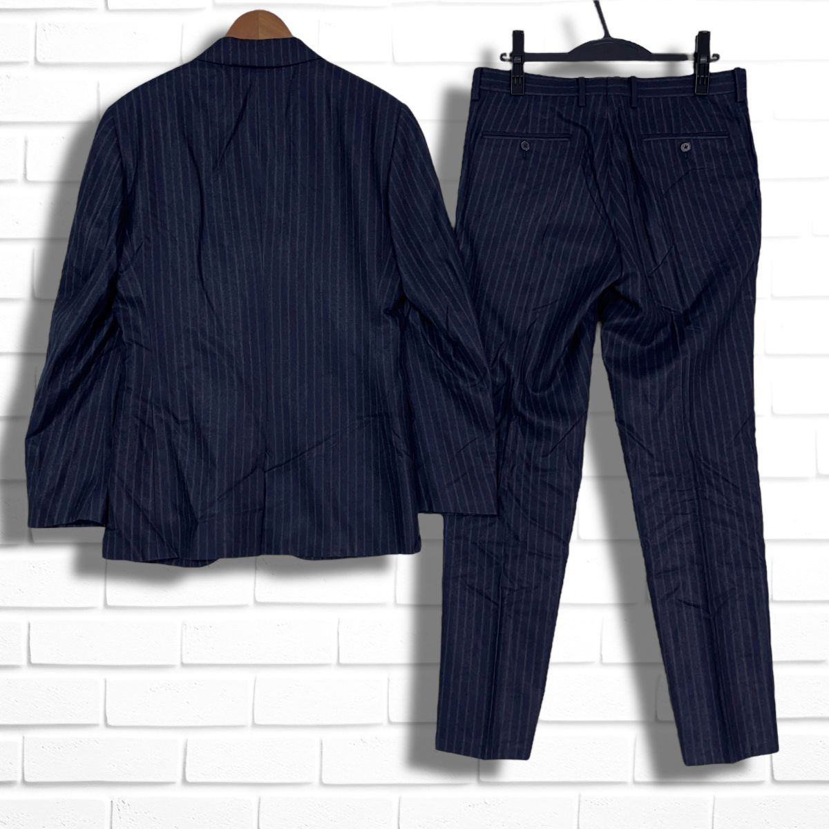 ◆美品◆ JOSEPH HOMME ジョセフ オム ウール 100% ストライプ セットアップ スーツ 紺 ネイビー メンズ 46 M ◆送料無料◆ 4735H◇