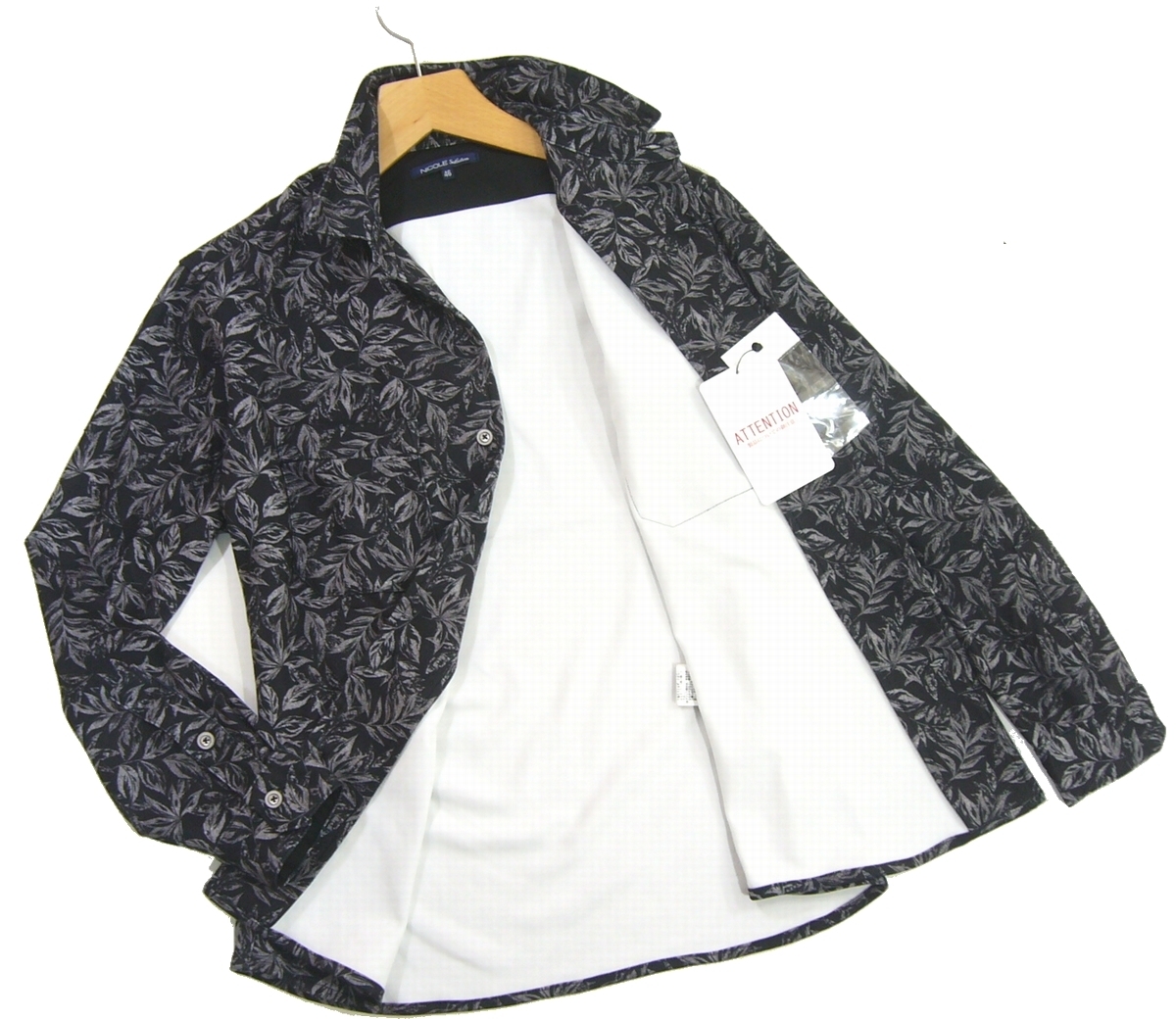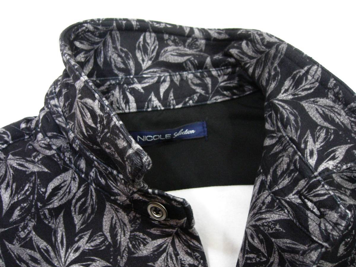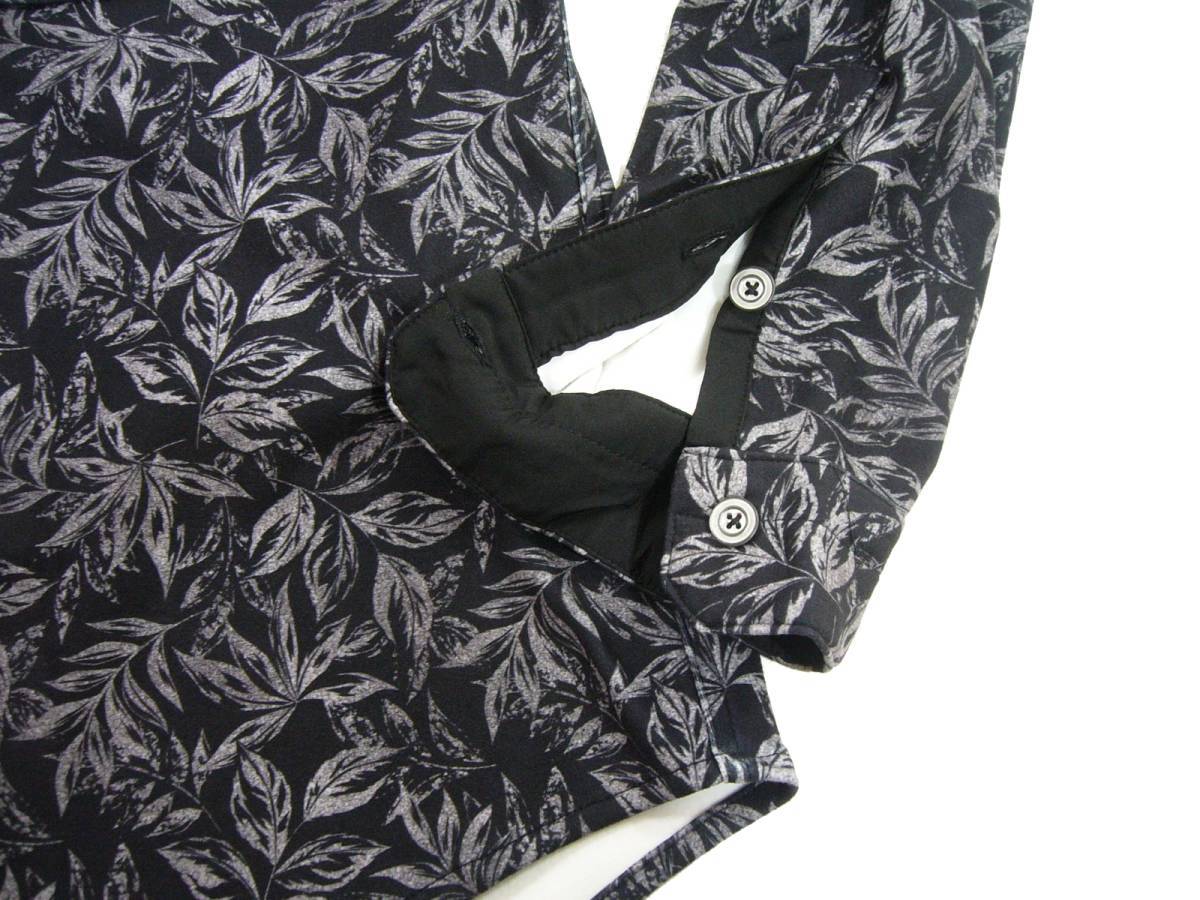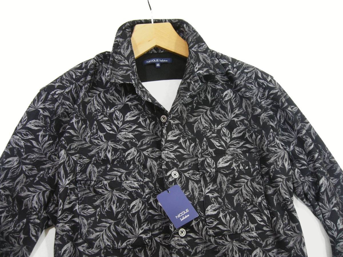 新品 ニコル ボタニカル柄 ストレッチ 長袖シャツ 46/M ブラック 衿ワイヤー シャツジャケット NICOLE Selection