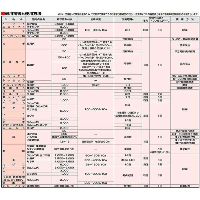 ・作物に対して薬害の心配が少なく、また人畜・水産動植物・ミツバチに対しても毒性が低い殺菌剤です。