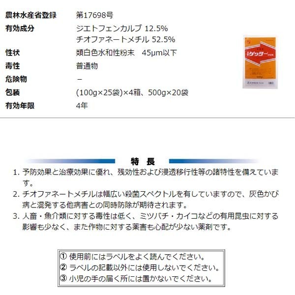 ・有効成分:ジエトフェンカルブ 12.5%、チオファネートメチル 52.5%