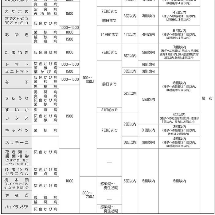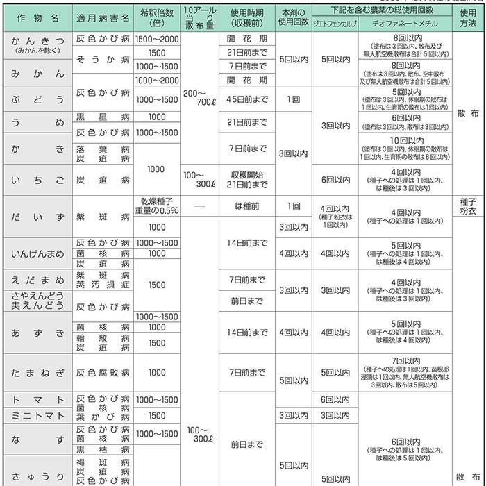・チオファネートメチルは幅広い殺菌スペクトルを有していますので、灰色かび病と混発する他病害との同時防除が期待されます。