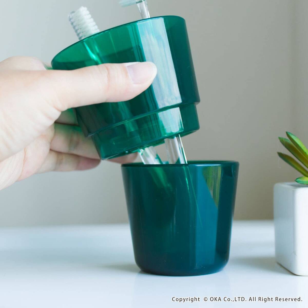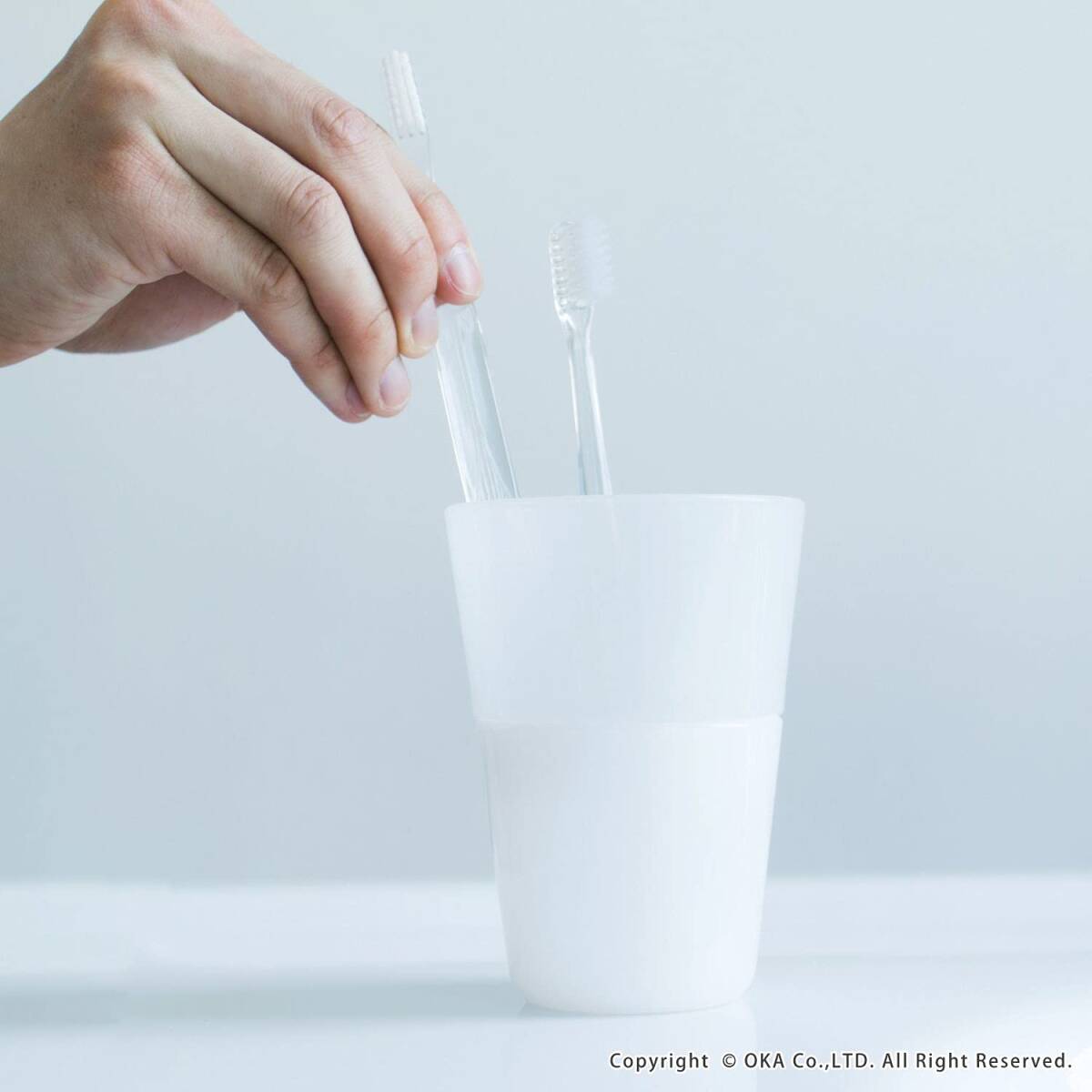 歯ブラシをたてる穴と、底の突起の仕切りが六角形のハニカム構造になっています。 この2種類の六角形が歯ブラシ1本1本を自立させ、特に触れ合いが気になるブラシ部分のぶつかりを防ぐポイントになっています。 シンプルな構造で特に内側は繋ぎめがなく、上蓋と底が分かれているので、とても洗いやすく、清潔にご使用いただけます。 ガラスのような透け感を、透明度が高く丈夫なプラスティック“アクリル樹脂で表現しました。 軽すぎないから倒れにくく、水回りにとけこみやすいデザインです。