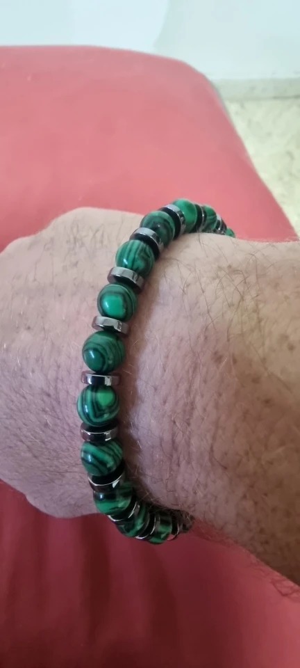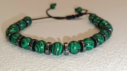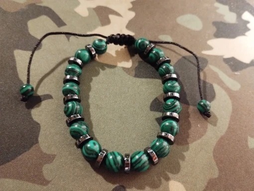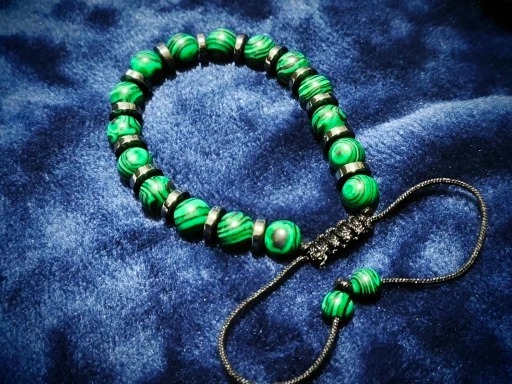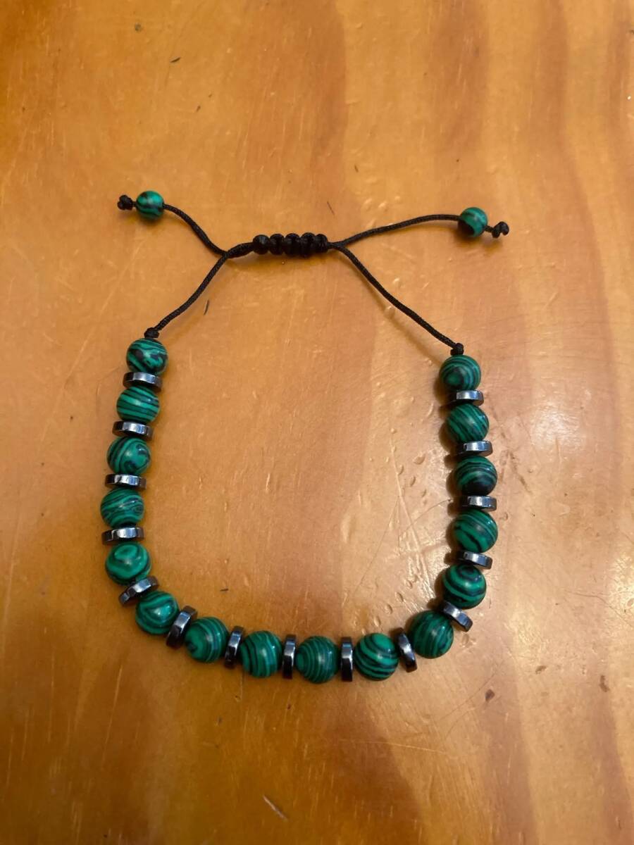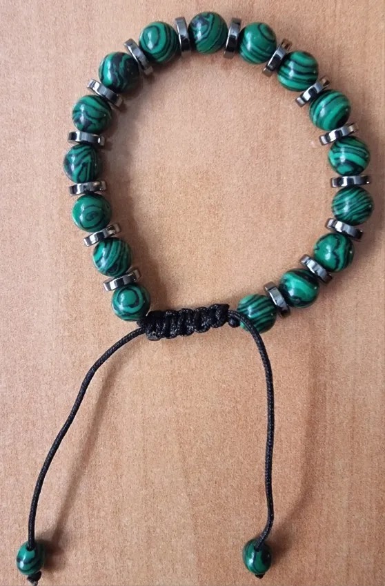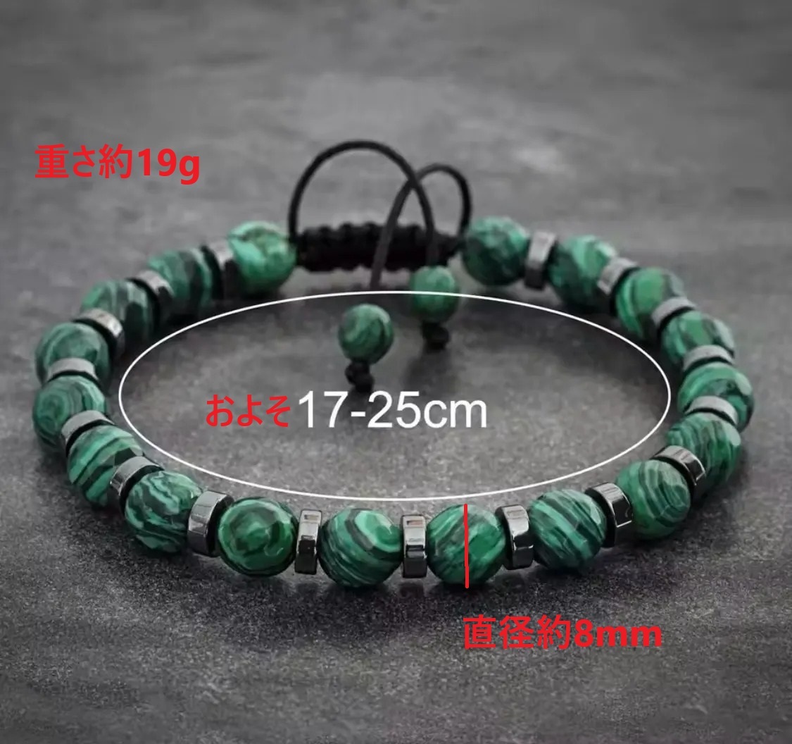 [天然石ブレスレット孔雀石 クジャク石]開運 お守り 運勢マラカイト幸運 数珠鉱物 銅鉱石 炭酸水酸化銅 Cu2CO3(OH)2 ウラル山脈 南アフリカ
