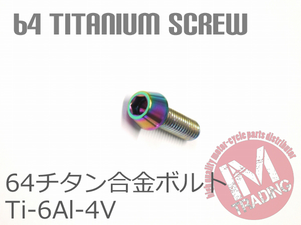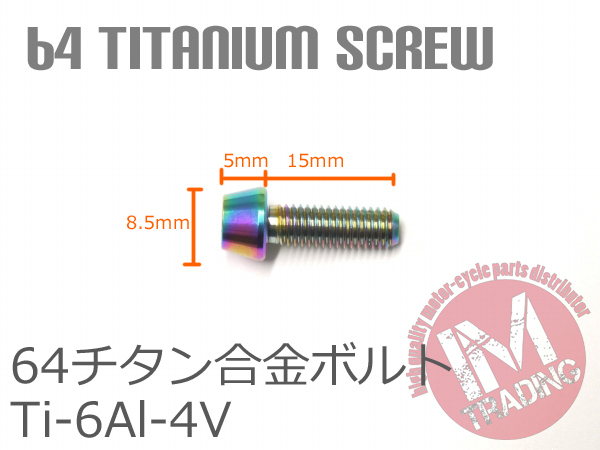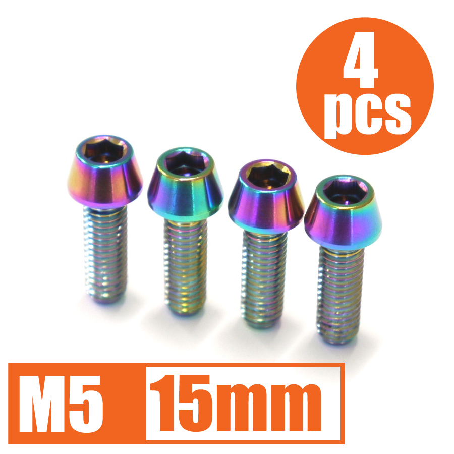 64チタン合金ボルト M5×15mm P0.8 4本セット テーパーキャップ ゆうパケット対応 焼き色有り Ti-6Al-4V
